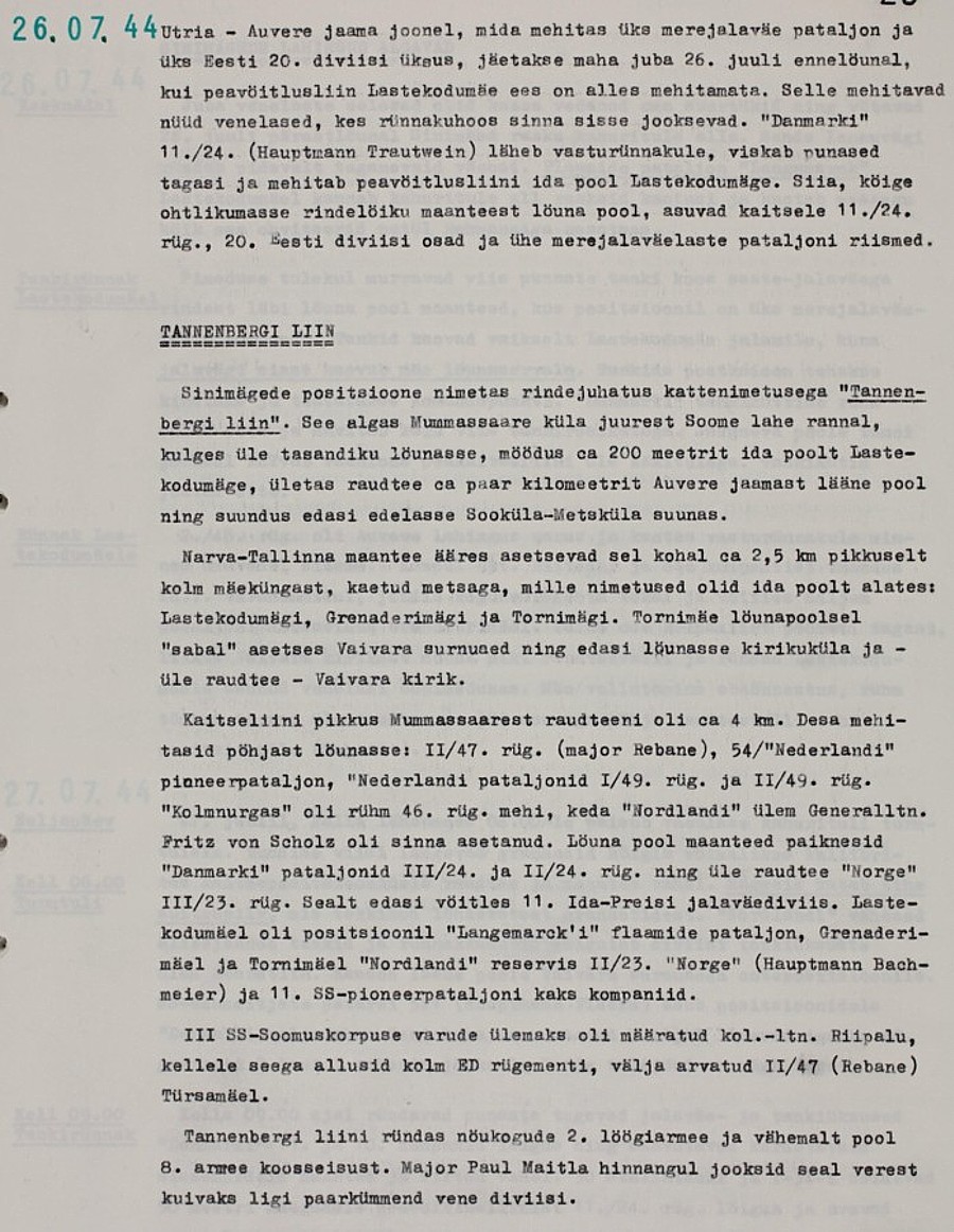 109. laskurdiviisi ettekanne 26. juuli 1944.