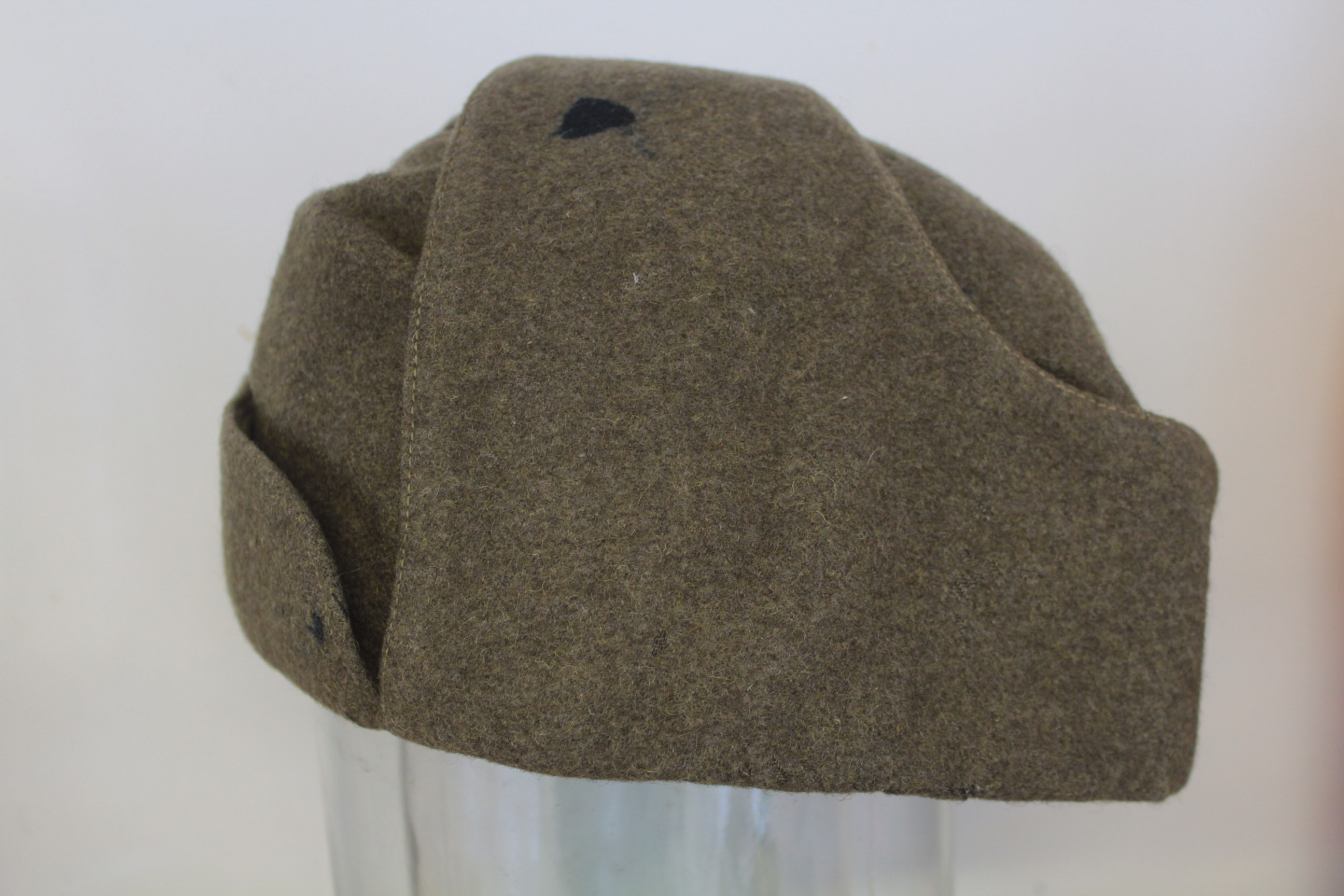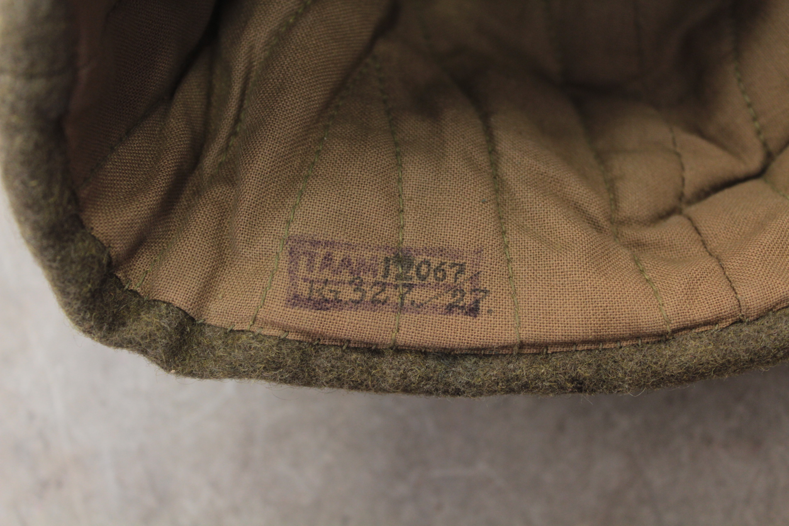 VS või 1920-ndate algusaastate talimüts. See mudel oli kasutusel juba VS ajal ja kanti veel mõned aastad pärast sõda nagu piltidelt paistab. Väheliikuvam väikese nokaga variant. Otsaees näha mütsimärgi klemmide auk. Ühel kõrval on tindiplekk. Manuses on ainus pilt mida olen näinud sellise tüüpi mütsiga. Müts pärineb Draamateatrist kuhu sattus nõukogude ajal kui Ajaloomuuseumi varusid anti sinna lõikuda.