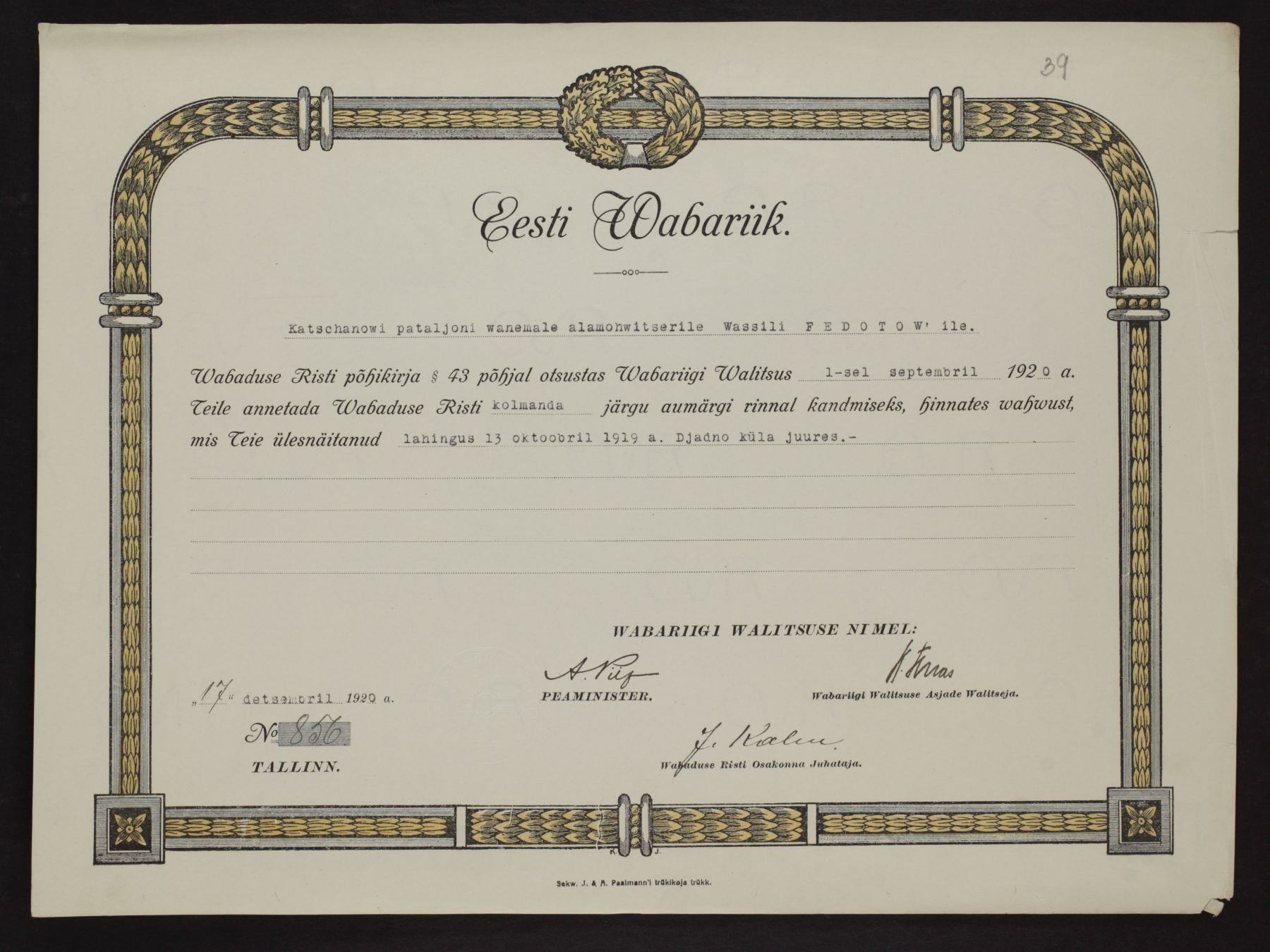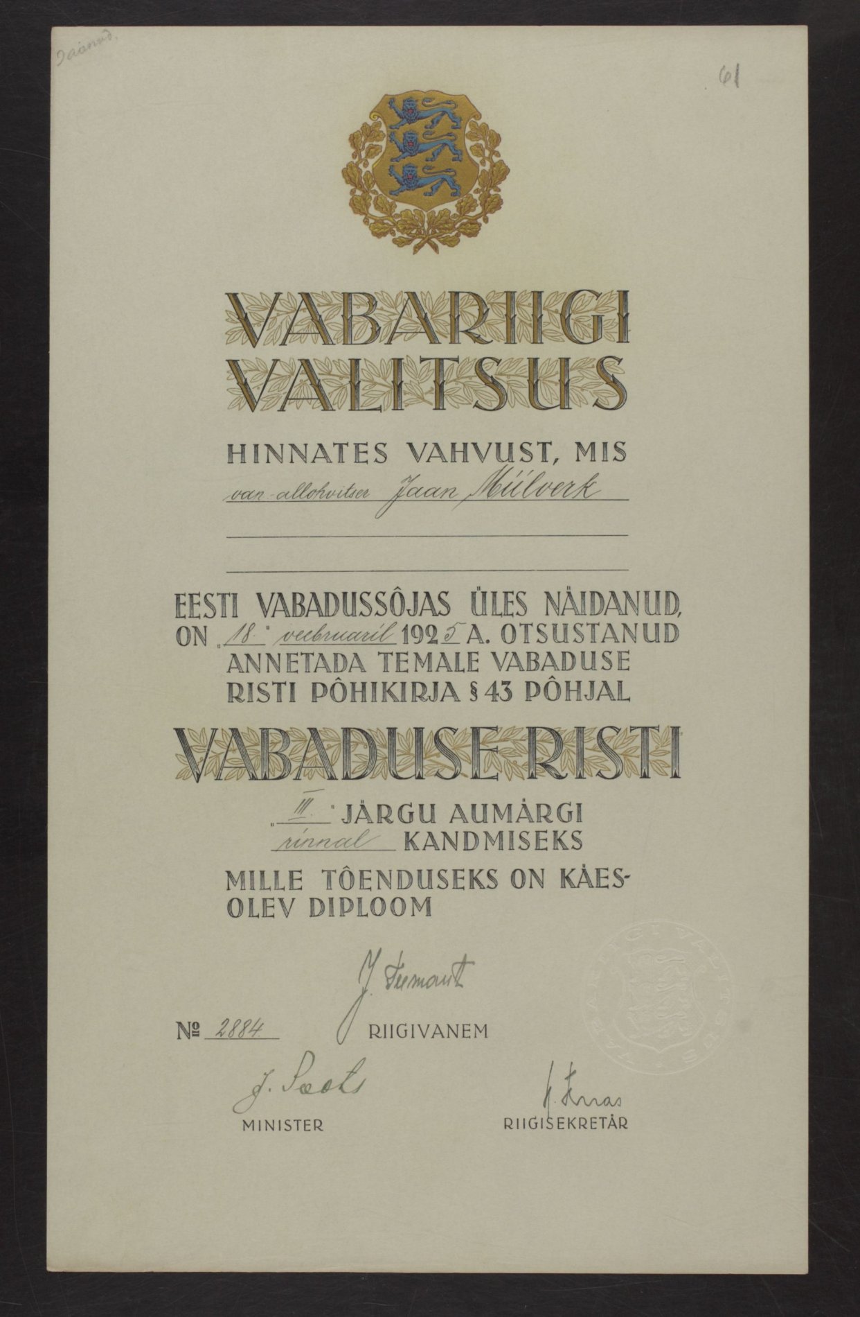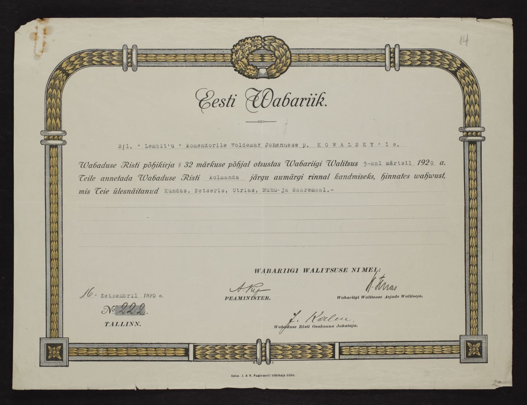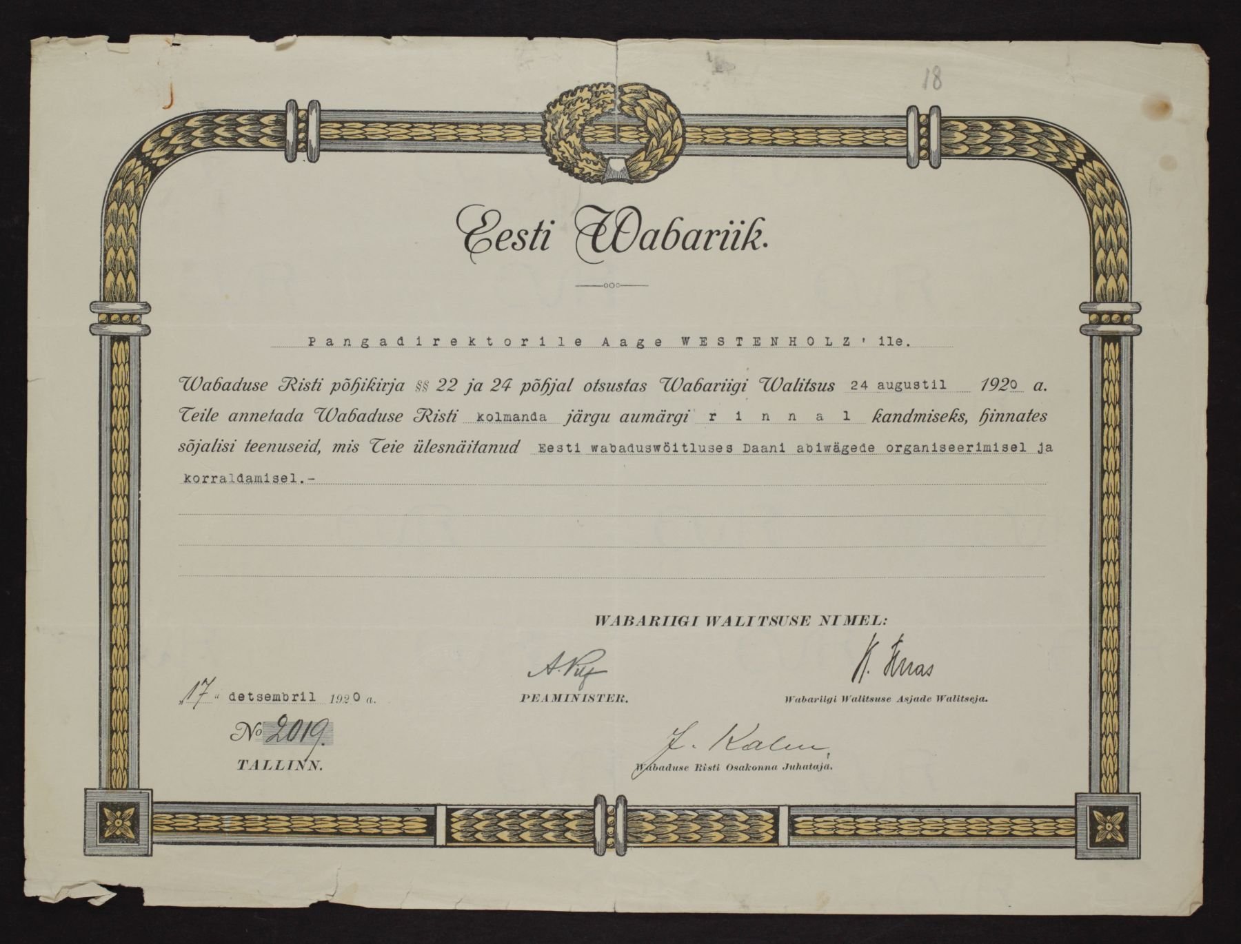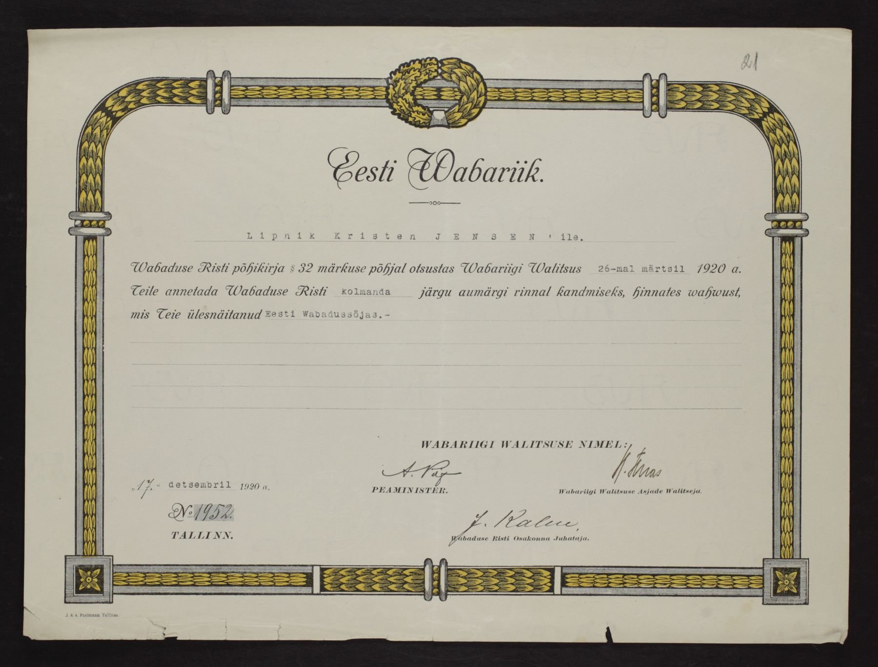 Vabadusristi tunnistused ...