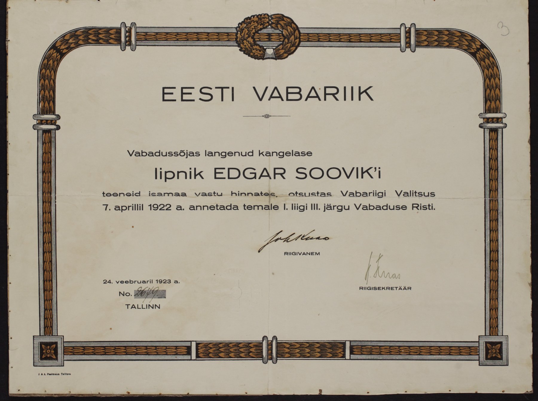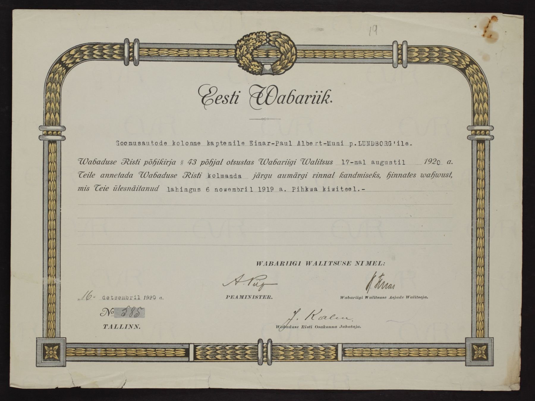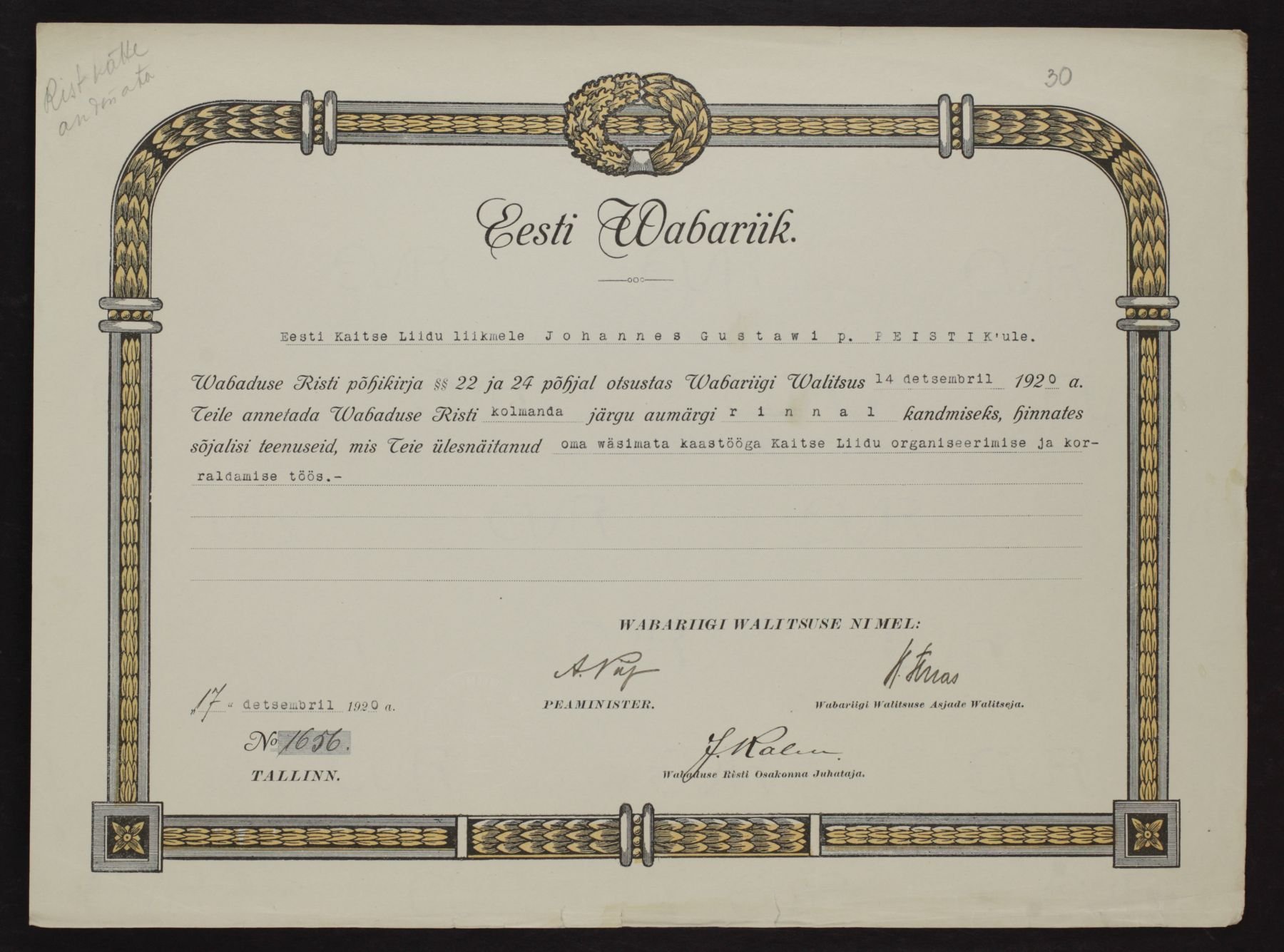 Re: Vabadusristi tunnistused ...