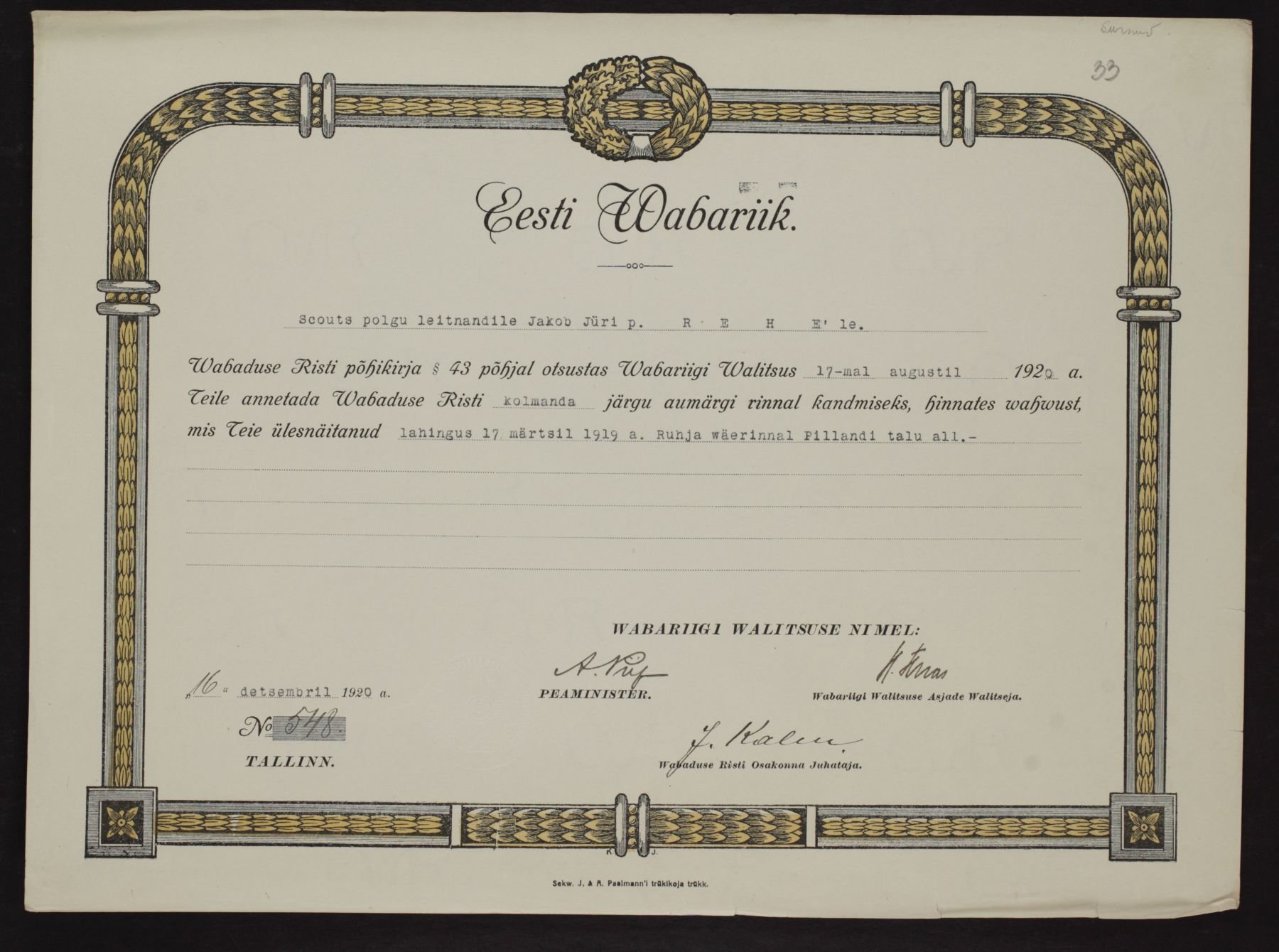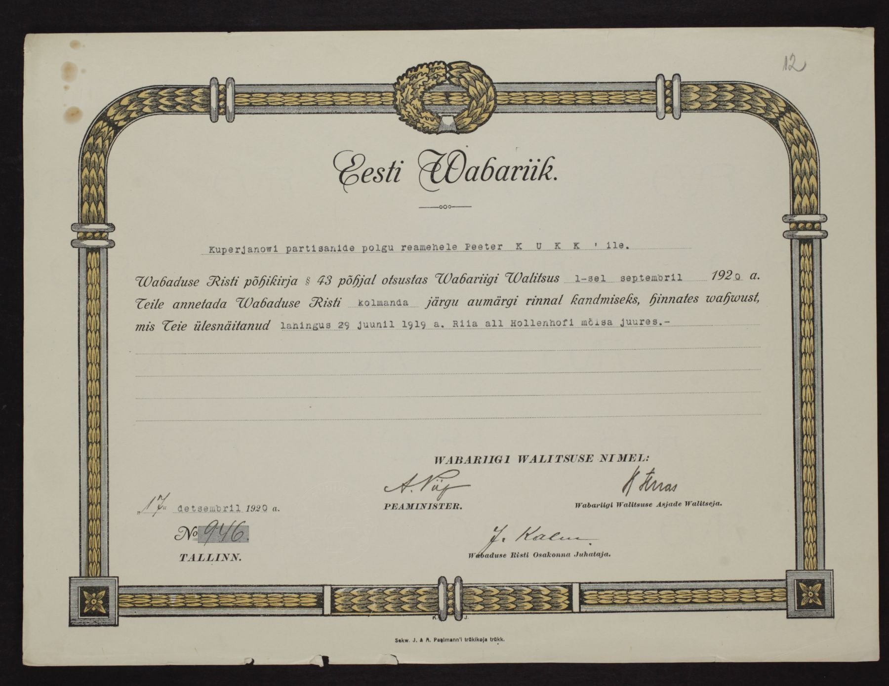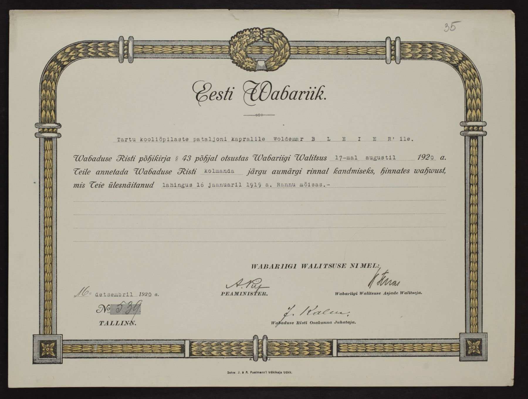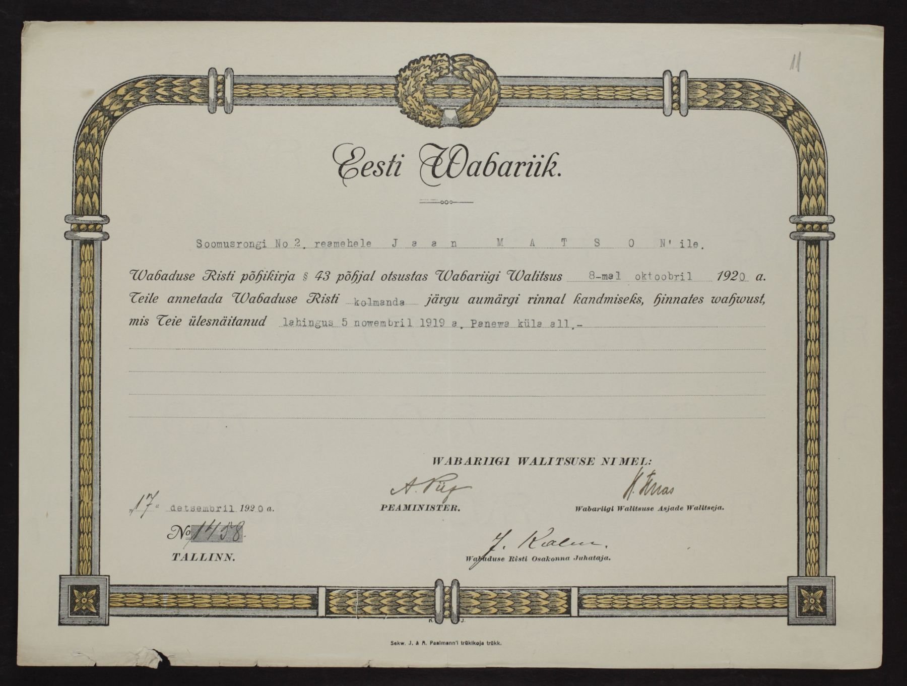 Re: Vabadusristi tunnistused ...