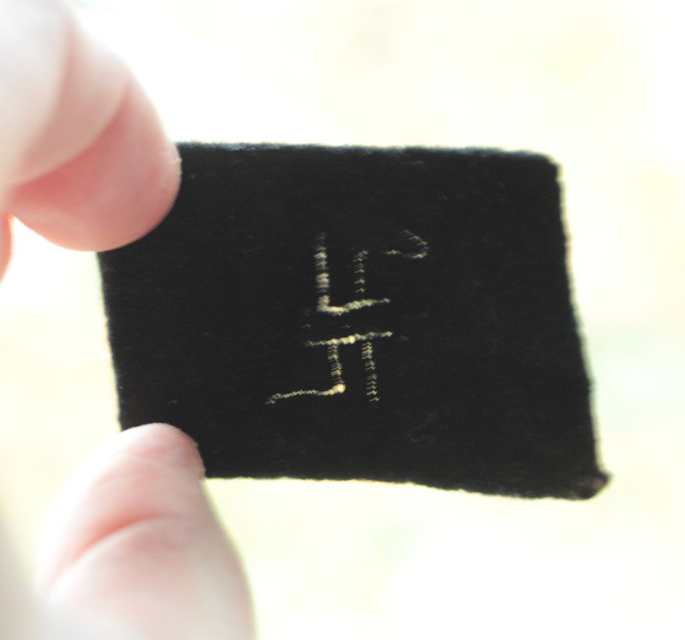 On olnud hollandlaste hundikonksu tikand mis siis ära mädanenud koos tagumise kotiriidega. Kraenurk ise tugev ja korralik. Mõnest kohast on tikand riide katki söönud. Kui ruunid peale panna ei paista see alt välja.