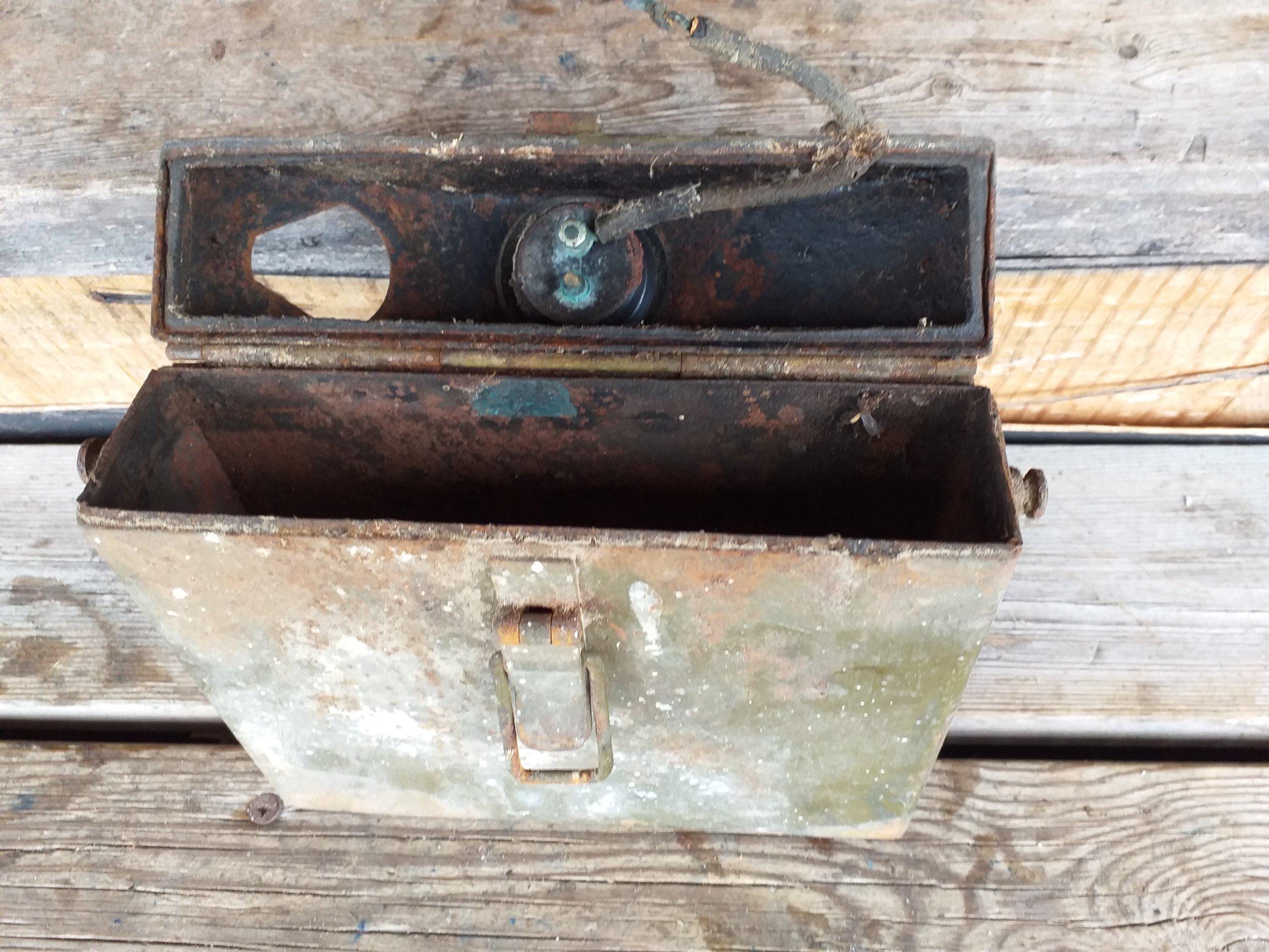 Selline 15 x 22 cm metallist karp, nagu oleks mingi aku ümbris.Peal kahvelpistik.