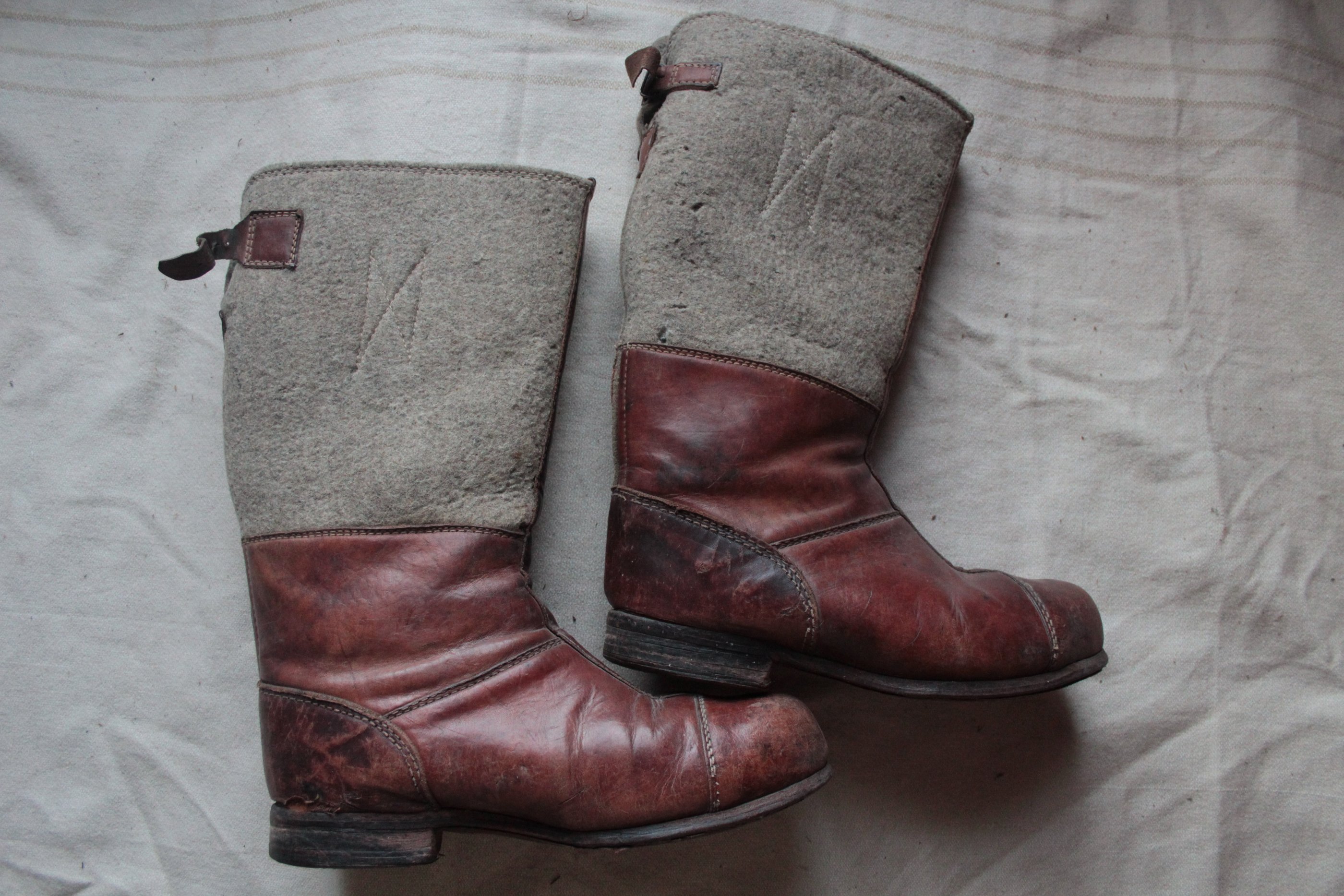 Korralik kantud paar Muhust. Suur suurus- 31 (ehk siis talla pikkus cm.) Markeeritud valmistaja nime ja aastaga 1943.
