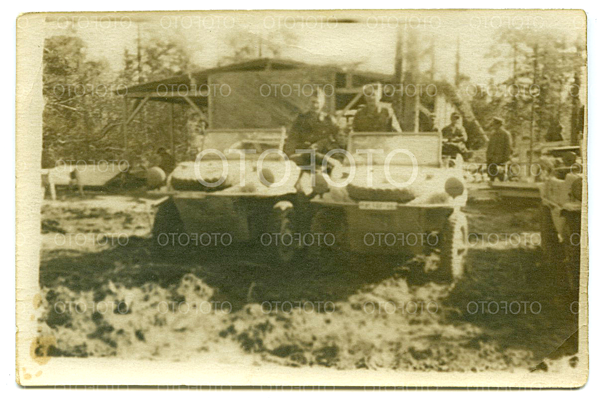 Esmapilgul muidugi keskendub pilk Schwimmidele, kuid taamal oleva maja katuseääre tasemel paistavad 3 huvitavat asja - nagu oleksid paadid?kass kirjutas:Kriuksu esimesel pildid meestel seljas LW troopikariided. Huvitav kus pilt tehtud on ja kas aasta 1945 peab paika? Kõrval ka WL auto ja massinad on üldse telliste peal. Kas mingi remonditöökoda?