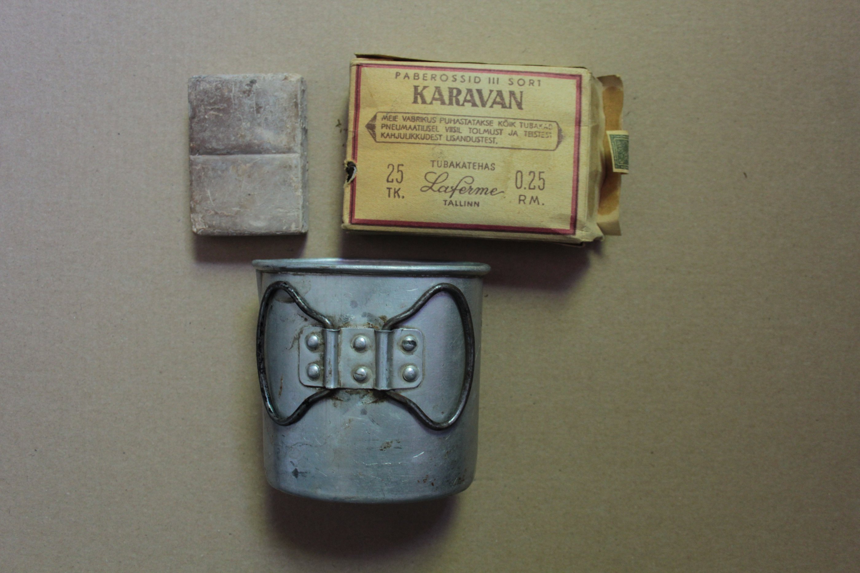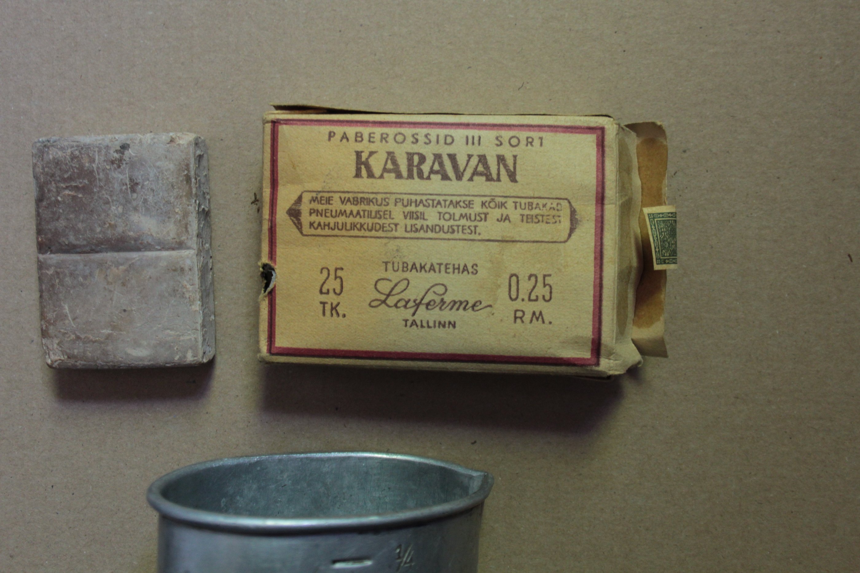 M: Saksa sõjaväe seep, joogipudeli tops, "Karavan" sigaretid.