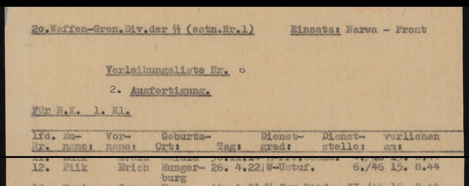 7. Untersturmführer Erich Piik (26.04.1922 - ???)