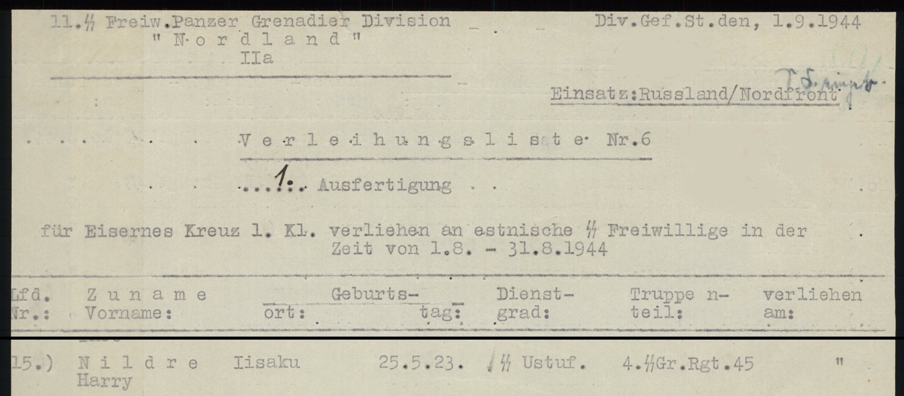 10. Untersturmführer Harry Niidre (25.05.1923 - 31.01.1950)