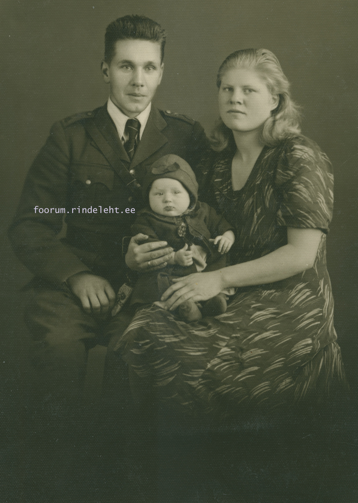 Järvamaa Omakaitse liige Johannes koos naise Silvi ja tütrega.