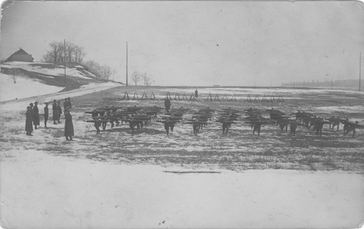7. ÜJR sõjamehed relvavõtteid õppimas. Pilt võetud üles Võru linnas.