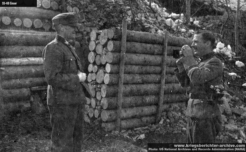 Rootslasest sõjakirjasaatja ϟϟ - Ustuf. Hans-Caspar Kreuger koos oma autojuhiga uudistamas Narva varemeid ...