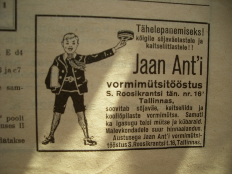 Reklaam "Kaitse kodust". Ehk tehti ka Roosikrantsis sõjaaeg mütse edesi?