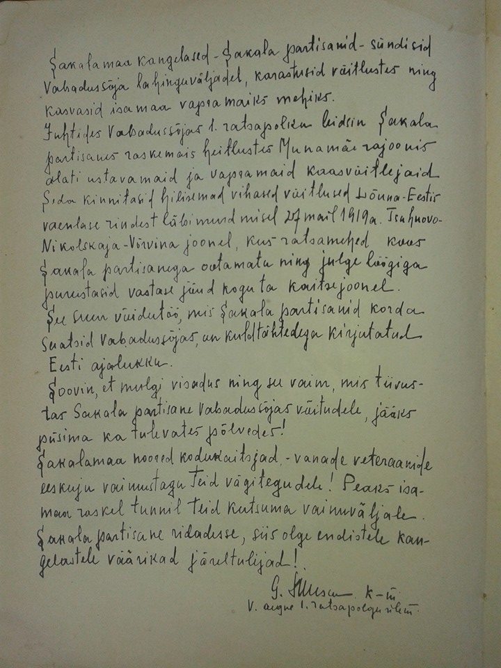 skulmars kirjutas:Ratsarügemendi ohvitseride kogule XV aastapäevaks 11. novembril 1932. a. Sakala partisanid.