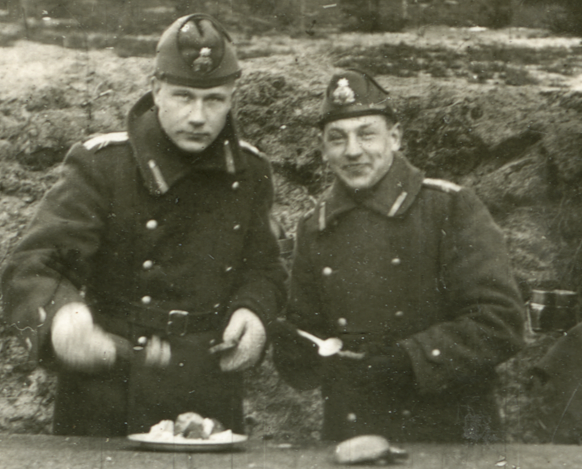 Erich Palk Valdekis. Õppuste vaheajal einestamas koos, hiljem üsna kõrgelennulist sõjalist karjääri teinud, koolivennaga.