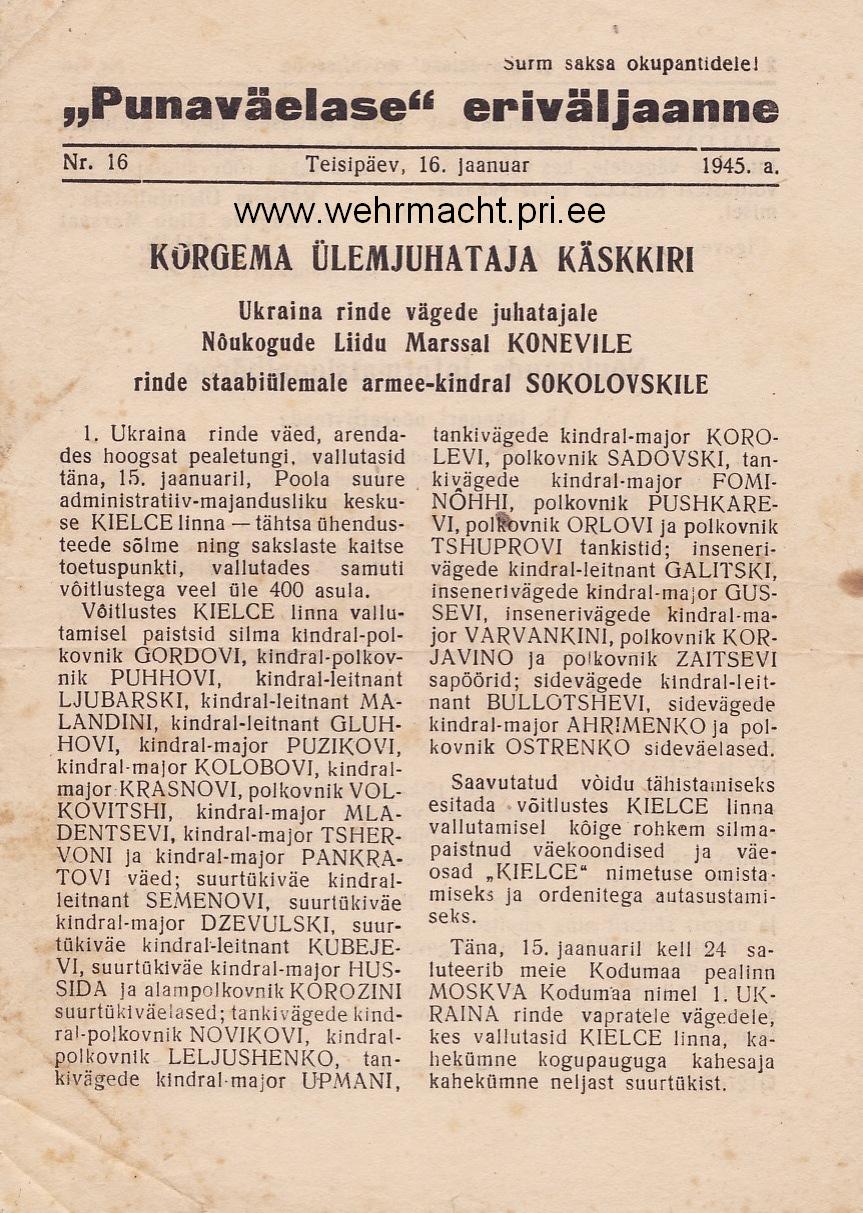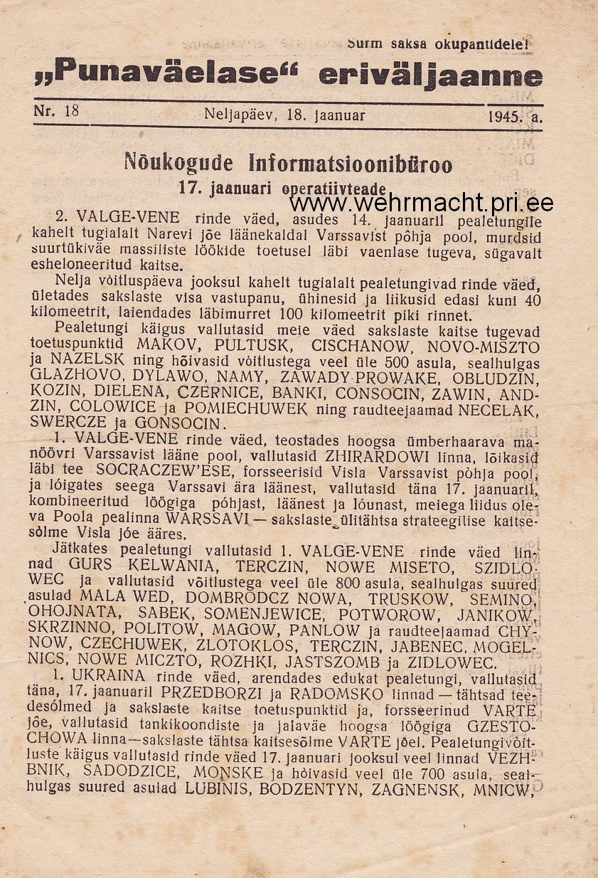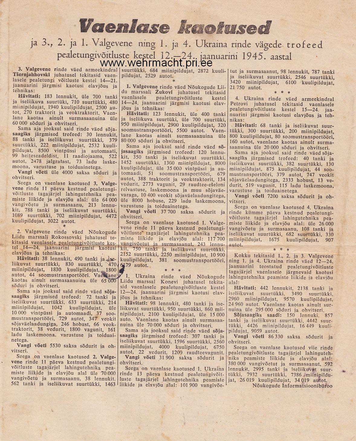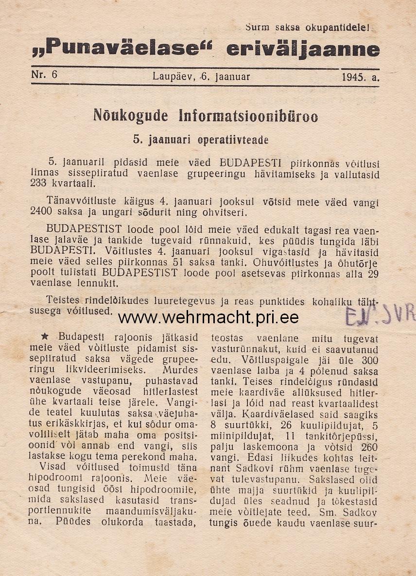 "Punaväelase" eriväljaanne 1.jaan. 1945.a. "Punaväelase" eriväljaanne 6.jaan. 1945.a.