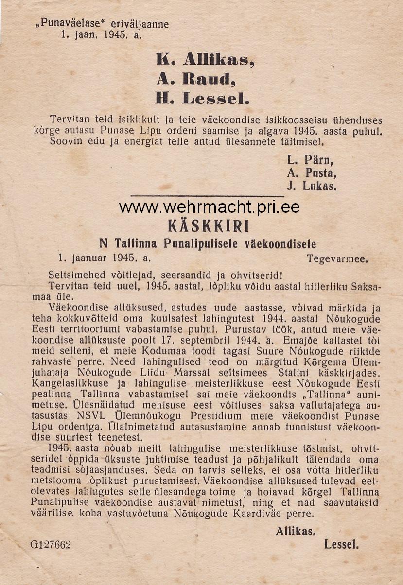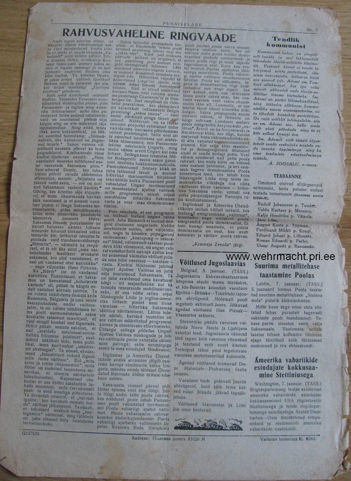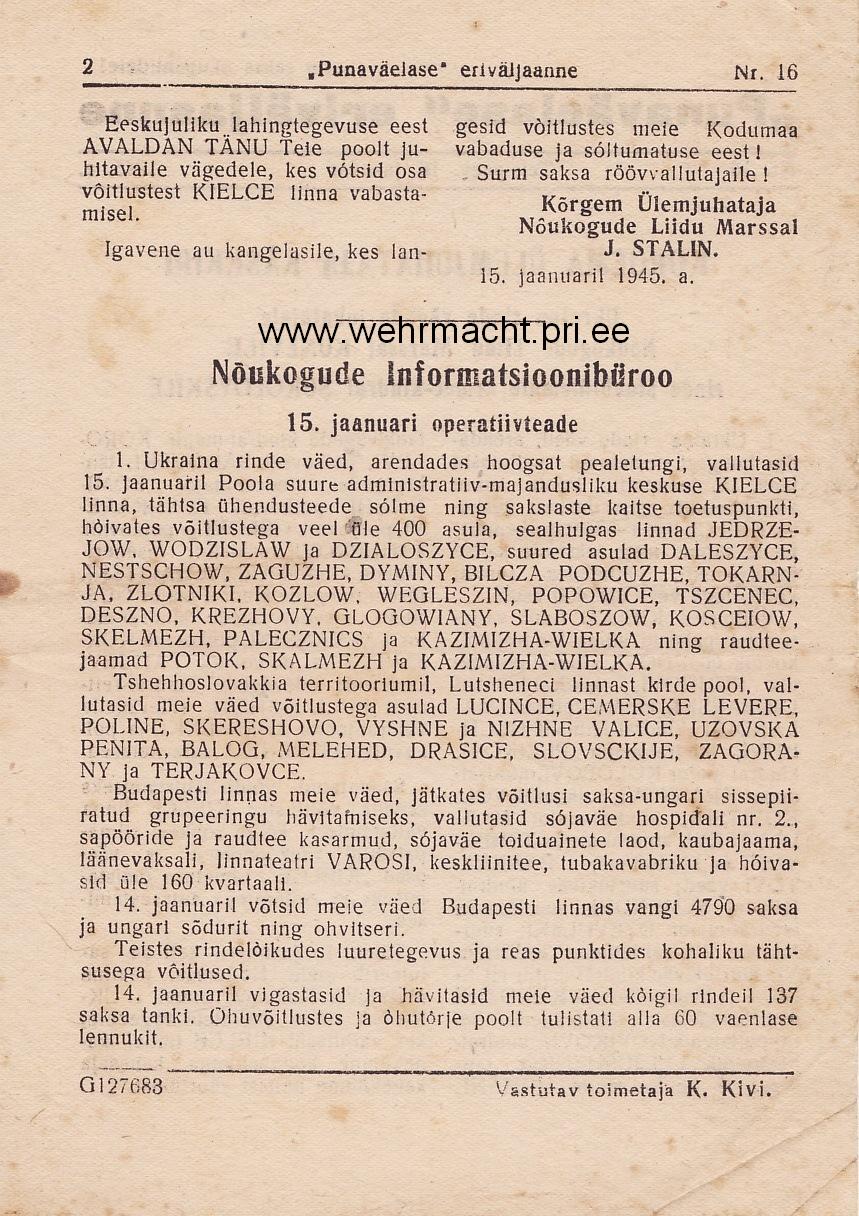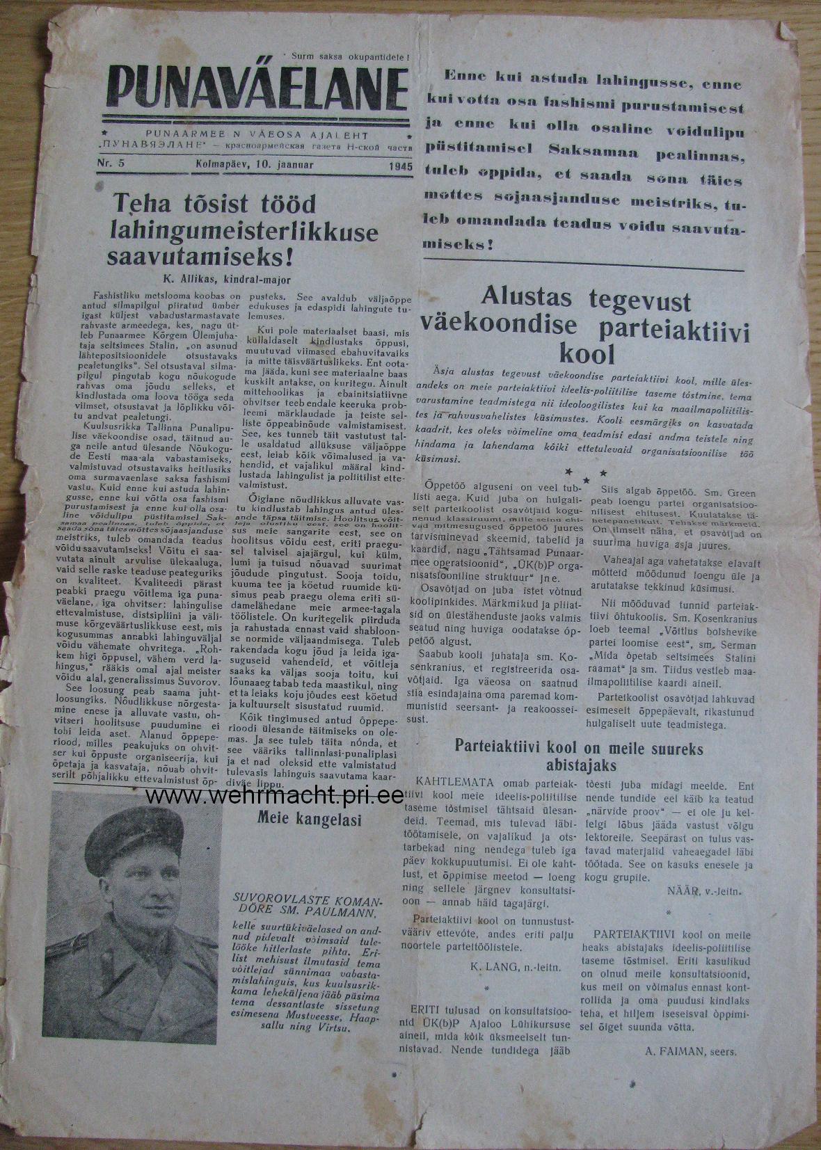"Punaväelase" eriväljaanne 1.jaan. 1945.a. "Punaväelase" eriväljaanne 6.jaan. 1945.a.