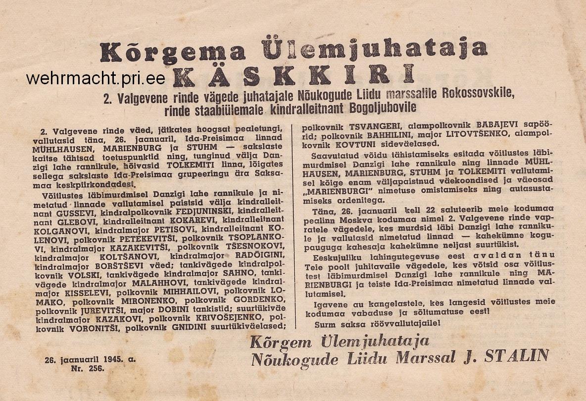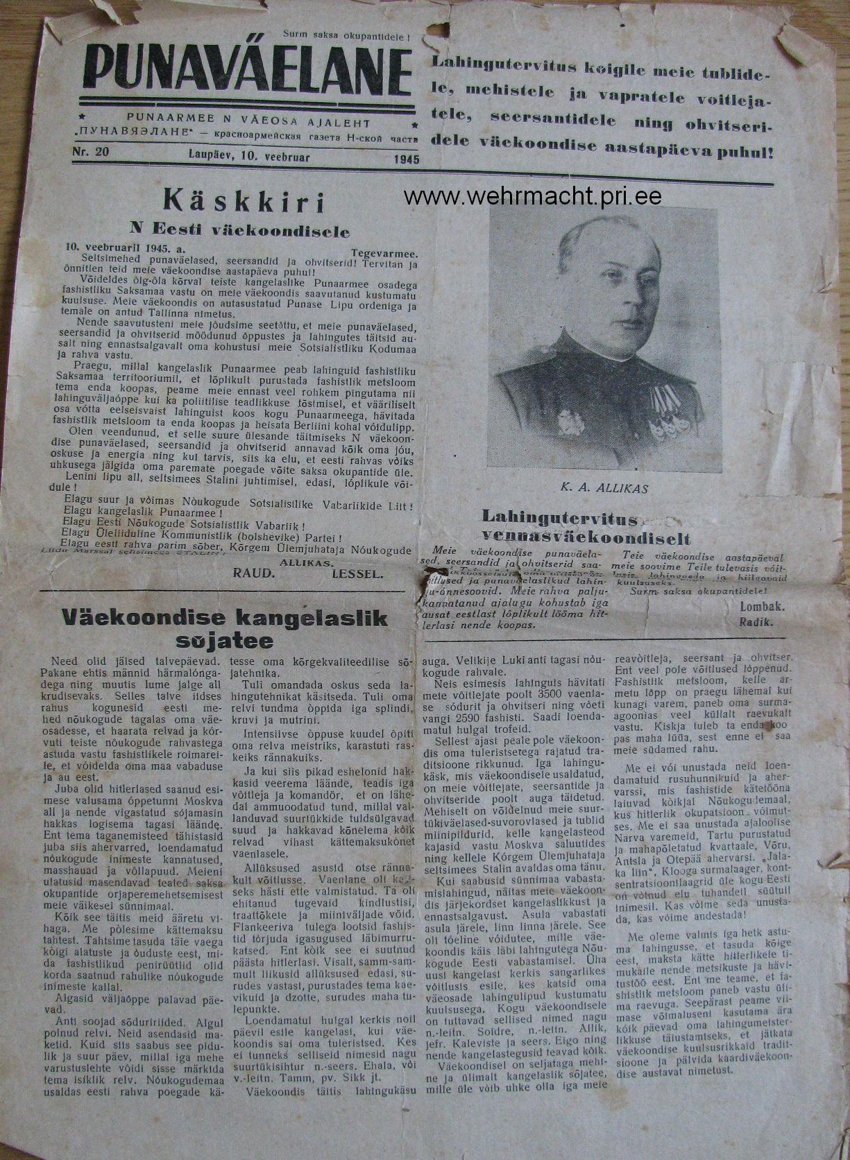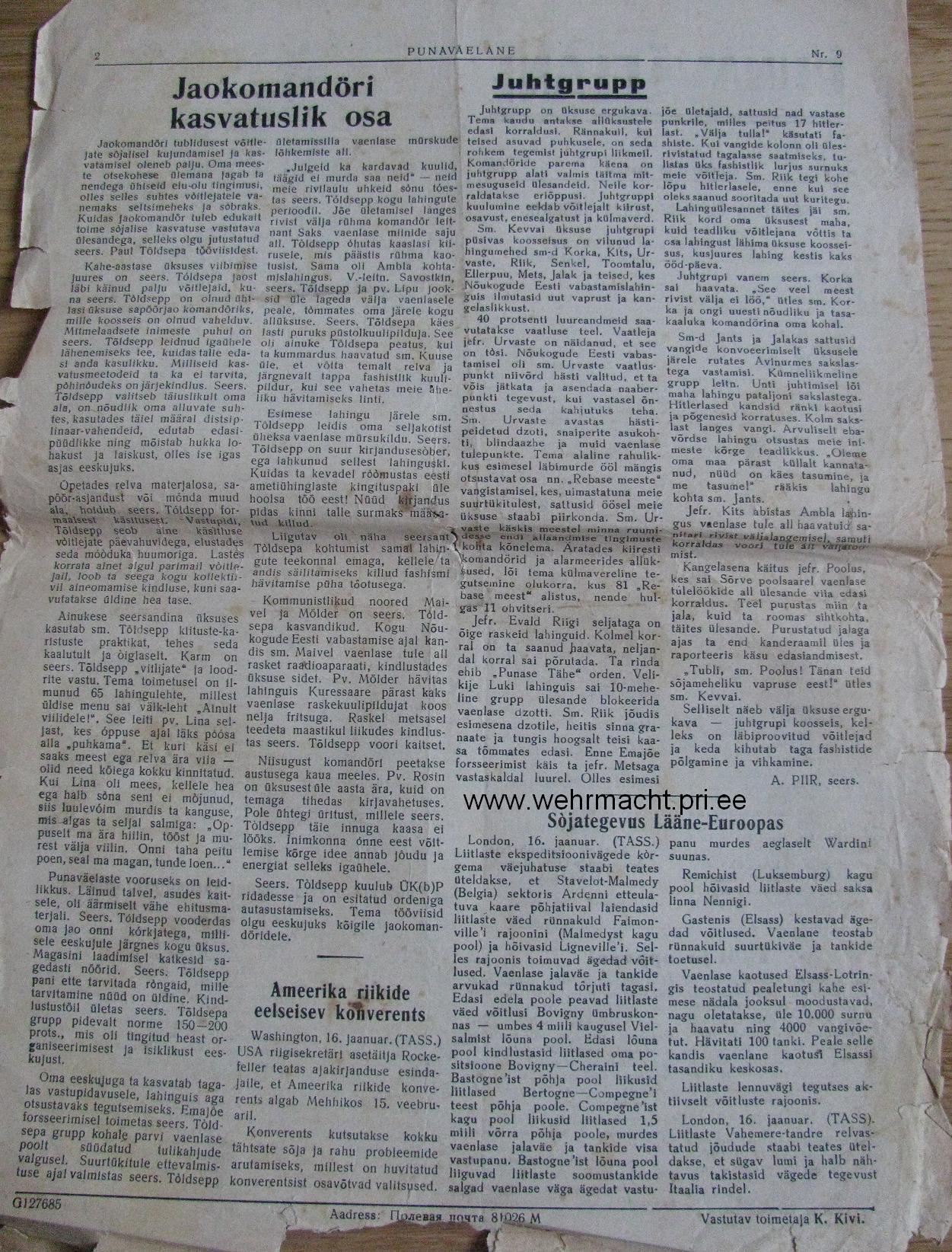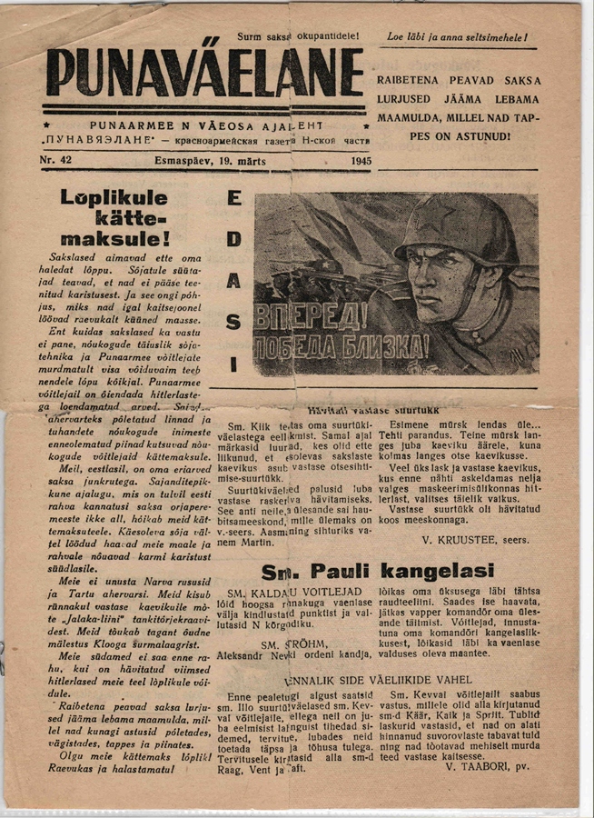 "Punaväelase" eriväljaanne 1.jaan. 1945.a. "Punaväelase" eriväljaanne 6.jaan. 1945.a.