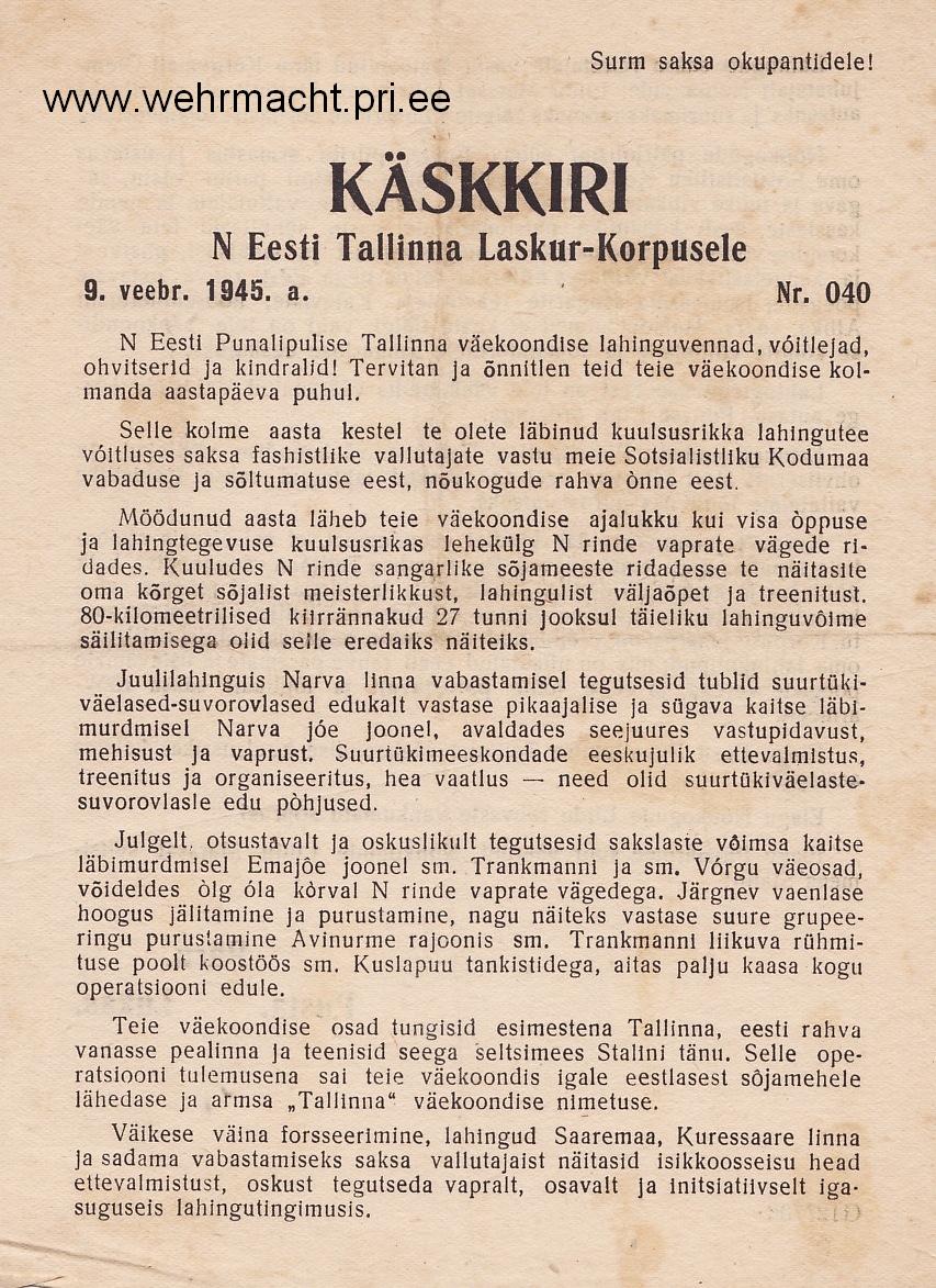 1943. Специальный выпуск [1-я годовщина Эстонского корпуса