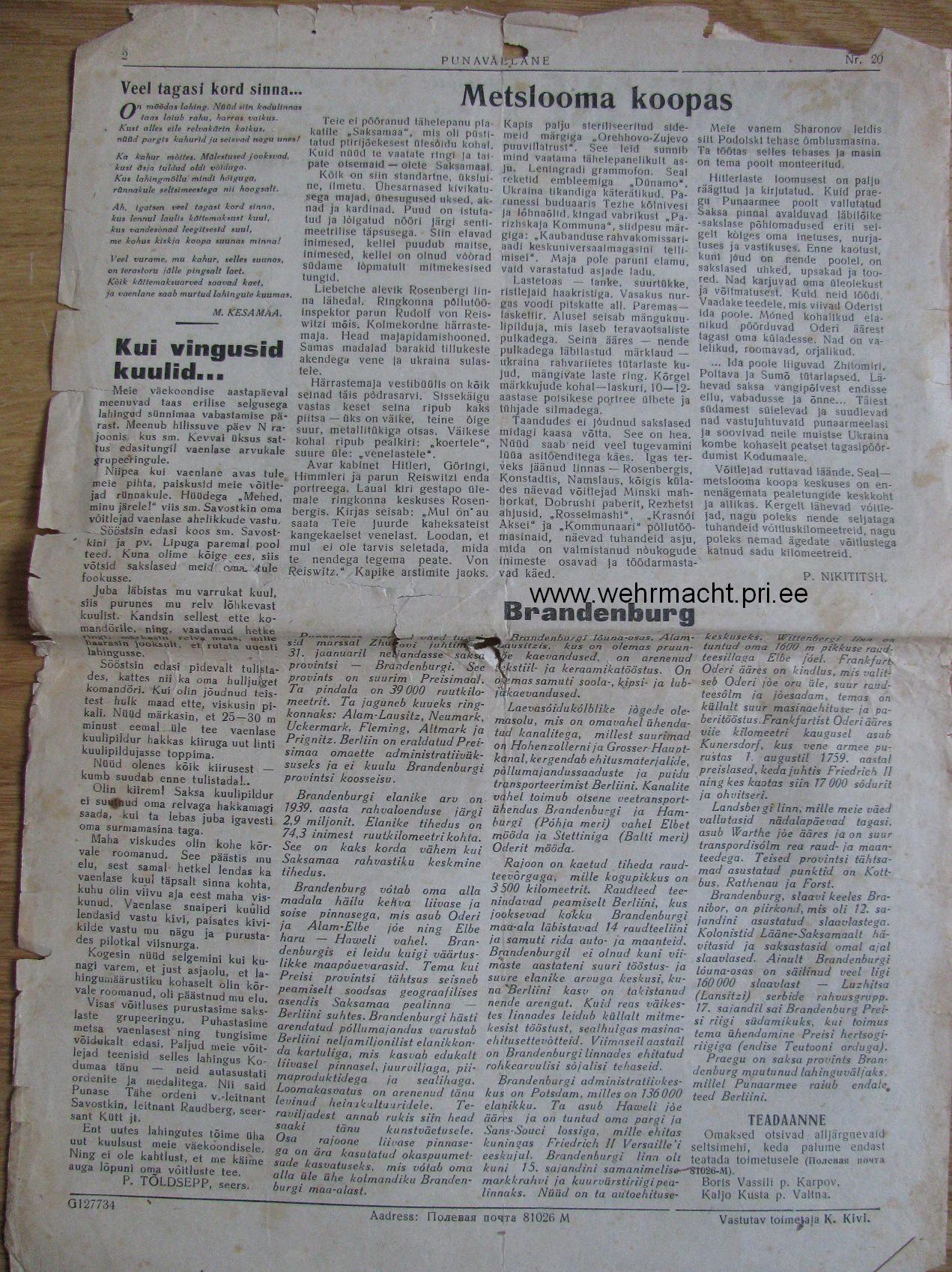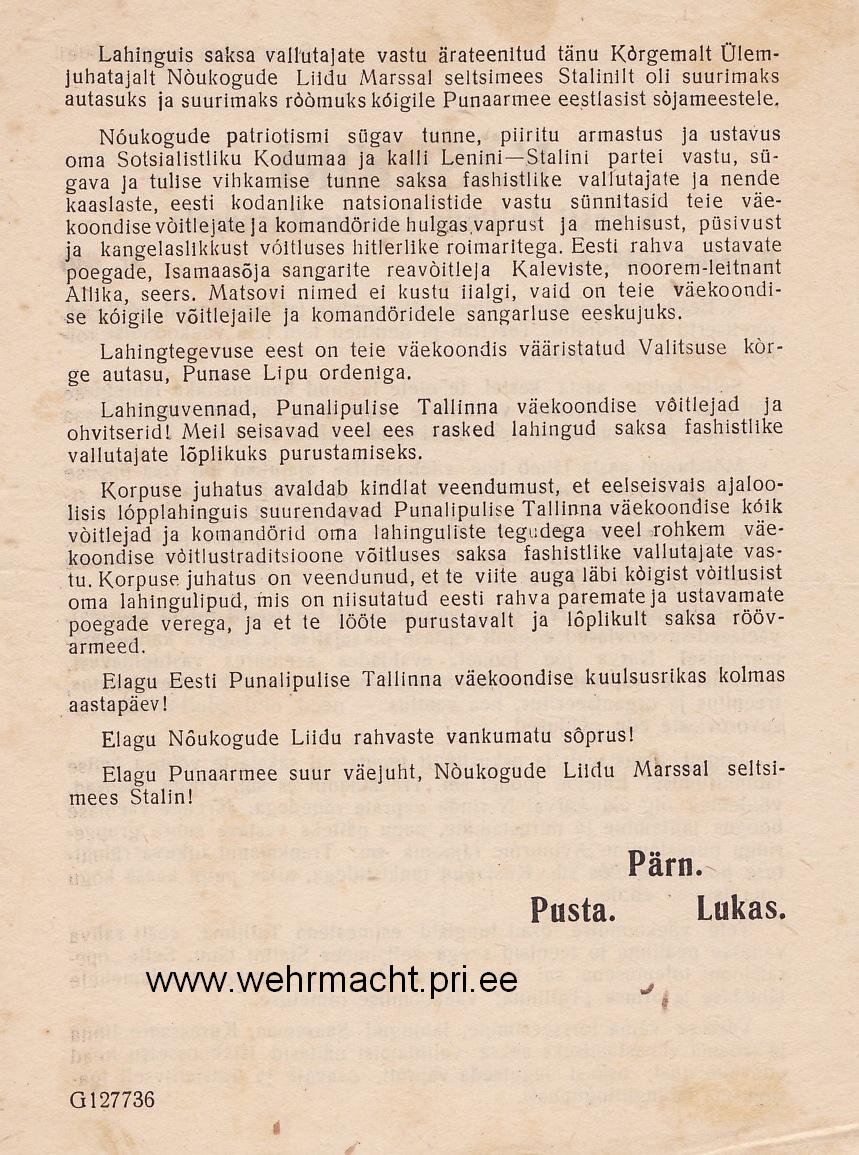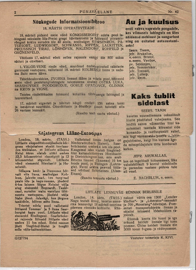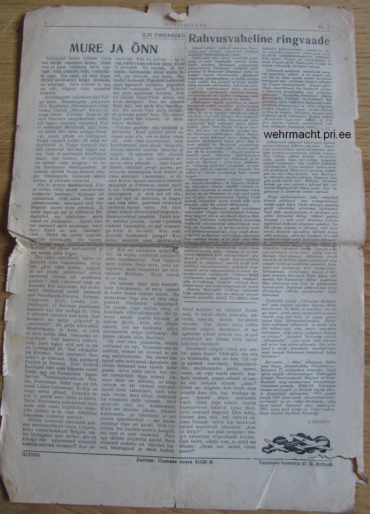 1944. – Numbris 2 lk. ; 31 cm. – Väljaandel märkus: Полевая почта.
