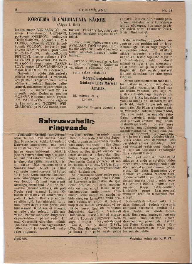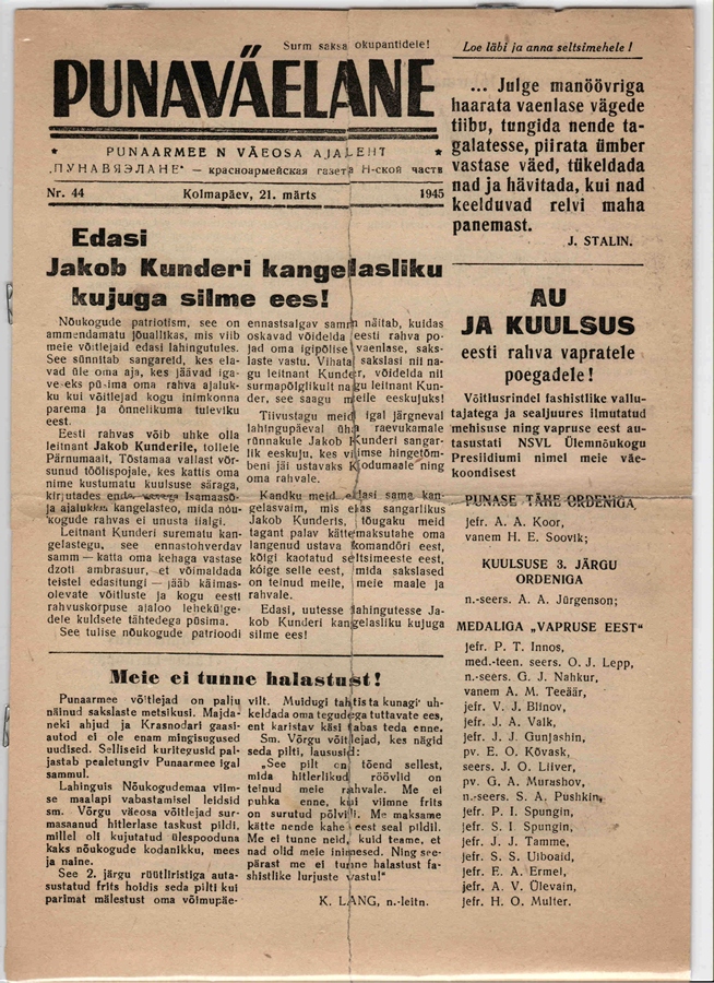 A. Pusta. – [S. l.], 1943 ( : Punaväelane). – 30 cm.