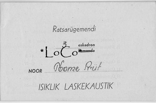 Seersandina Territoriaalkorpuses. Ratsaväe saaparosetid ja trafarett. Tema Noorkotka aegadest on säilinud 1930.a. väljaanne "Noorte kotkaste" põhimäärus. Samast kohast tuli ka teise mehe Ratsarügemendi laskekaustik, ilmselt eelmise mehe kamraad-kaasajateenija.