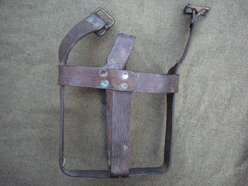 Välipudeli rihmad inglise tüüpi pudelile ja perioodi aegne varustuse näidispilt KVÜÕA muuseumist.