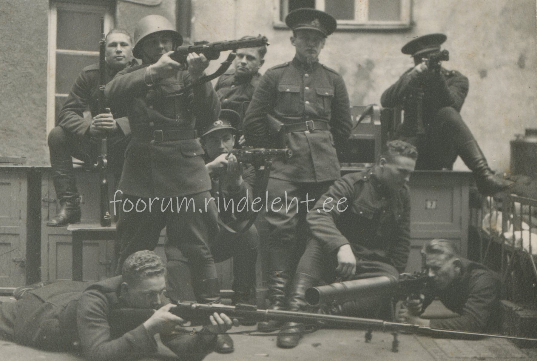No mis ta muud ikke on - ülejäänud mehed ju äratuntavalt kaitseliidul olnud jaapani vintide / tääkidega ning mõnedel meestel peas ka KL nokatsid...