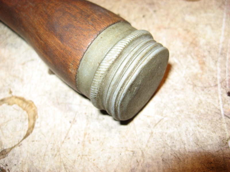 http://www.militaria-archiv.com/showthread.php?t=138912also mit den Kappen das war so: Bei der ersten deutschen Stielhandgranate 1915 war der Stiel unten kugelförmig abgedreht und die Abreißschnur guckte einfach unten raus. diese Schlaufe wurde an den Stil gelegt und mit einem "Klebepapier" gesichert. Beim Sturmangriff, im engen Graben oder beim Robben konnte man dennoch irgendwo hängen bleiben. Das war äußerst schlecht für die Gesundheit, deshalb ging man noch im selben Jahr dazu über, den Stiel unten eckig zu machen und setzte eine Kappe aus gewachster Pappe auf, die die Abzugsschnur mitsamt der inzwischen angebrachten Porzellanperle schützte. Dummerweise war es im Schützengraben nicht immer ganz trocken und die Kappe konnte sich auflösen. eine Abreißschnur mit baumelnder Perle daran war natürlich noch gesundheitsschädlicher, als eine normale Schnur und deshalb wurde 1916 ein Gewinde auf den Stiel gesetzt, auf das eine ziemlich flache Metallkappe geschraubt wurde. Dummerweise ließ diese Kappe sich mit schlammigen Händen (was im Grabenkampf nicht ungewöhnlich war), äußerst schlecht abschrauben und eine Abreißschnur, an die man nicht herankam, war unter Umständen genauso schädlich, wie eine, die immer in der Gegend rumbaumelte. Deshalb kam man auf die Idee. an die Metallkappe einen geprägten "Stern" zu nieten, der endlich eine gute Handhabung ermöglichte. Gegen Ende des Jahres 1917 wurde der Herstellungsaufwand für diese Art von Kappen für zu groß befunden und es wurden nun höhere Kappen hergestellt, die am oberen Ende sternförmig aufgebogen wurden. damit sparte man sich die Herstellung und das annieten der Sterne. Offenbar hat sich diese neue Kappe nicht besonders bewährt, denn bis Kriegsende und darüber hinaus wurden auch die alten Kappen weiterverwendet. Sie erlebten im zweiten Weltkrieg eine Renaissance, indem alte, noch vorhandene Bestände für die Stielhandgranate 24 benutzt wurden. Weil diese Kappen wesentlich griffiger waren, als die normalen, wurden sie als Winterkappen bezeichnet (man konnte ja nicht einfach sagen: Wir haben nichts anderes mehr). Alle Metallkappen gab es anfangs aus Eisen. Weil aber auch das anderswo dringender gebraucht wurde, nahm man später jenes Ersatzmetall, das in der wunderbaren Lage ist, 90 Jahre im Drech nahezu unbeschädigt zu überstehen.