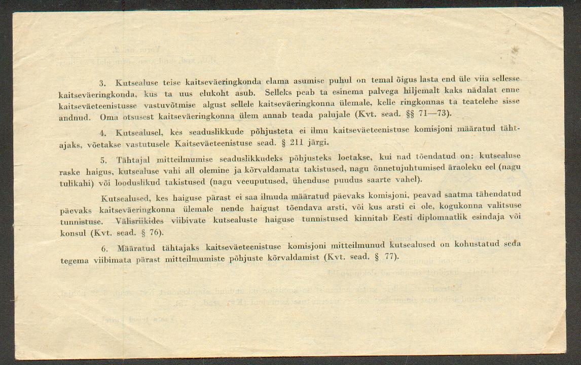 Nagu näha on see teade saadetud allkirja vastu vallavalitsusele, mis siis omakorda korraldas kutsealuse tevitamise.