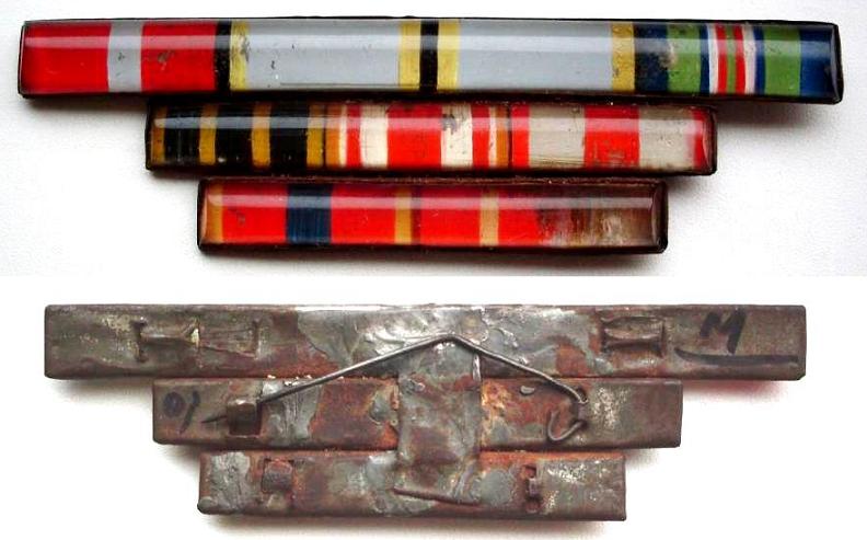 Vasakult paremale siis: esimese liistu omanik tundub kiva lahinguhunt olema - Leningradi ja Stalingradi kaitse medalid + Budapesti ja Viini vallutamise omad... Teine oli ilmselt ka lahingumees - vapruse ja lahinguteenete medalid + pärastsõjajärgne teenistus organites (medal 50a nõukogude miilitsat)... Kolmas olevat aga eestlase oma, kus tähelepanu äratavad kahe hinnalise hõbedast medali lindid - Isamaasõja partisani 1.j ning töövapruse medal - tegemist on vist kiva parteilasest tööeesrindlasega, kes ka kõvasti vassistide tagalas partisaanitseda jõudis :mrgreen: