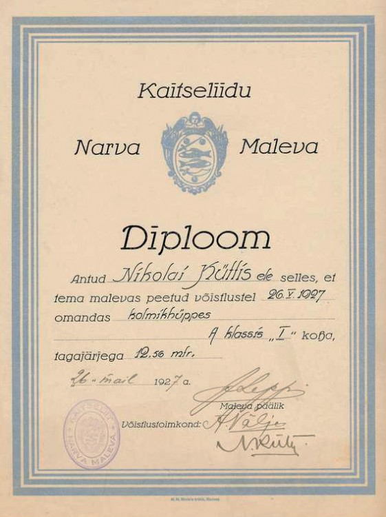 KL Narva maleva embleemiga spordidiplom (pilt võetud muis.ee lehelt).