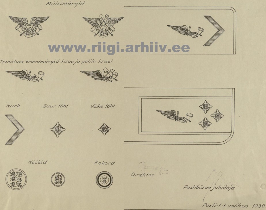 Eelpool toodud müts kuulub tegelikult alamastme postiteenistujale ja sellise mütsi ees kokardit ei kantud.