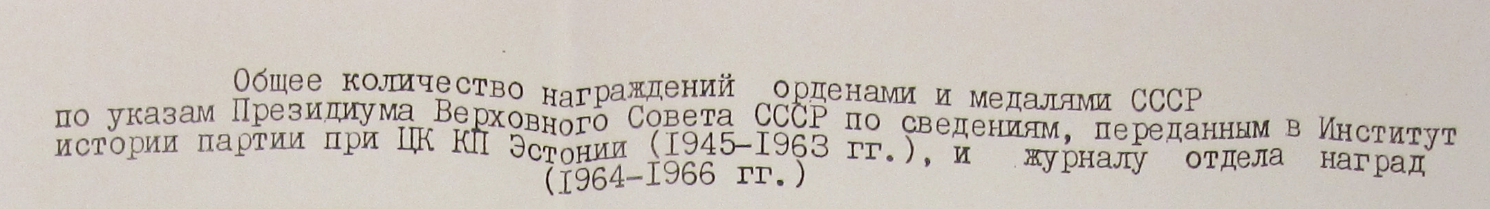 Piltidel autasustatute nimekiri ja ka mõned pildid mis tehtud vahetult pärast autasustamist ENSV Ülemnõukogu presiidiumis. Noored poisid kellel medal rinnas ja kes piltidel näha on, on Leander ja Kalju Jago. Mõlemaid autasustati II klassi medaliga. Oskab keegi kosta, mille eest?