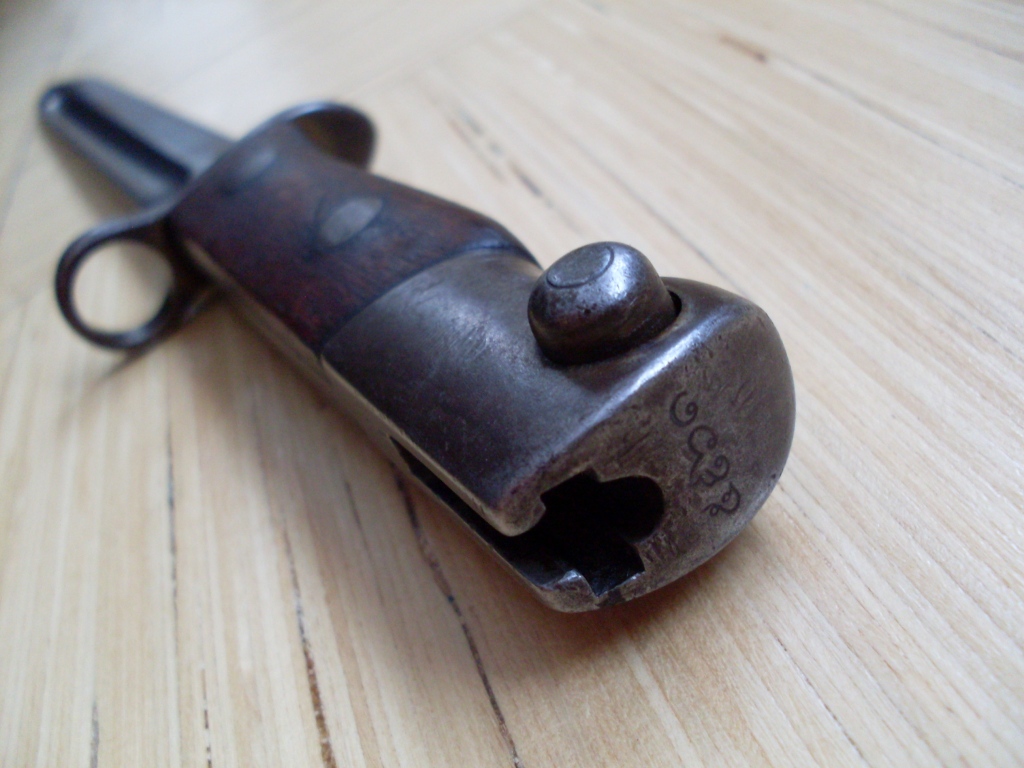 Jaapani poolt Siiamile toodetud saksa Mauseri vintpüssile sealsamas Jaapanis disainitud tääk - tera peal thai tähestikus kirje, käepidemel aga thai kirjaviisis number