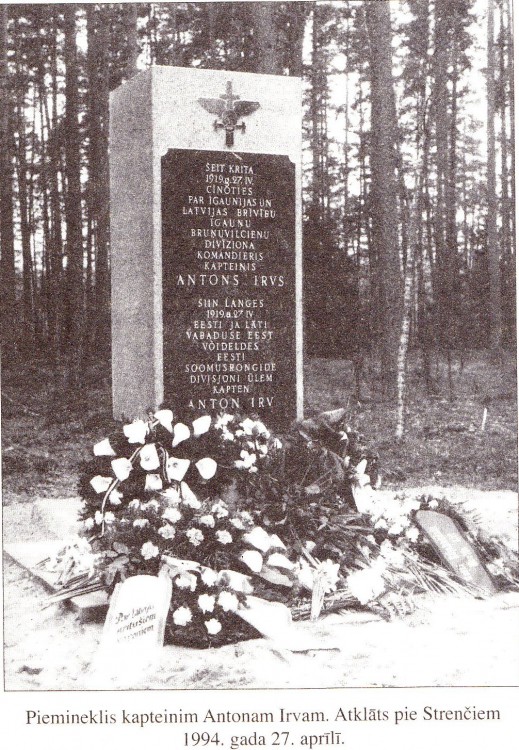 It's unveiled near Strenči (a town in Latvia) on April 27, 1994. <br />It's a copy from a book about Latvian War of Independence.