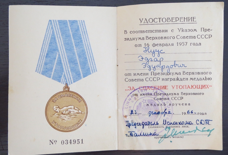 Üks Uppuja päästmise eest veel lisaks. 1966. aastal autasustati medaliga 19 korda.
