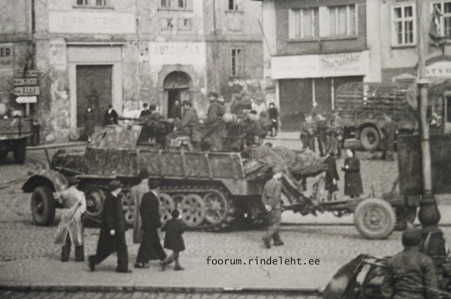 Second and third photos are from Jung Bunzlau (Mladá Boleslav) Street 9 May/ Peace Square (9.května/ náměstí Míru ). Sdkfz.7 from Turnau and Sdkfz.7/2 from Jung Bunzlau are Luftwaffe half trucks.