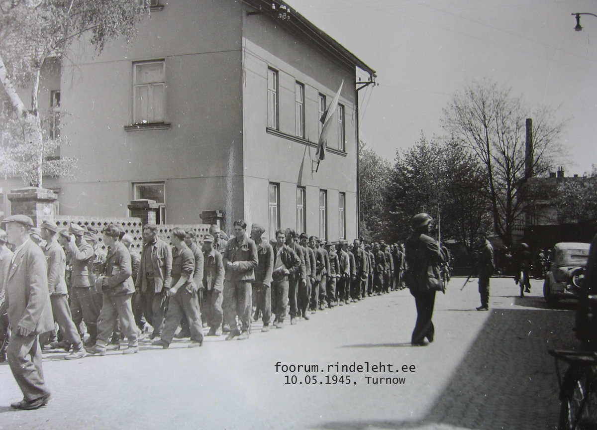 Veel üks Turnau linna pilt, kus näha eestlaste kolonn (ilma relvadeta).