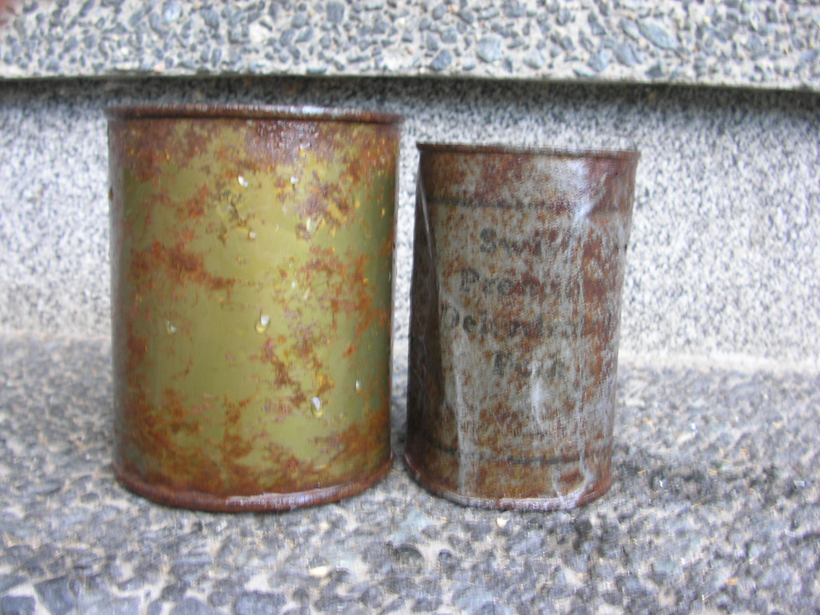 Mul ka mõned asjad mis enne ostmise lõpetamist ostetud. Enamus leitud ja kingituseks saadud. Viimaselt reidilt korjasin mõned roostes konservi purgid nalja pärast kaasa. Suuremal tuli Wehrmachti kiri alt välja. Peenem on miski Shveitsi sealiha vist. Kui keegi selle markeeringu järgi mis põhja all on oskab midagi ajajärgu kohta kommenteerida, siis oleks hea. Purke oli veel aga es viitsind tarida. Ega neid saa väga ilusaks ka enam.