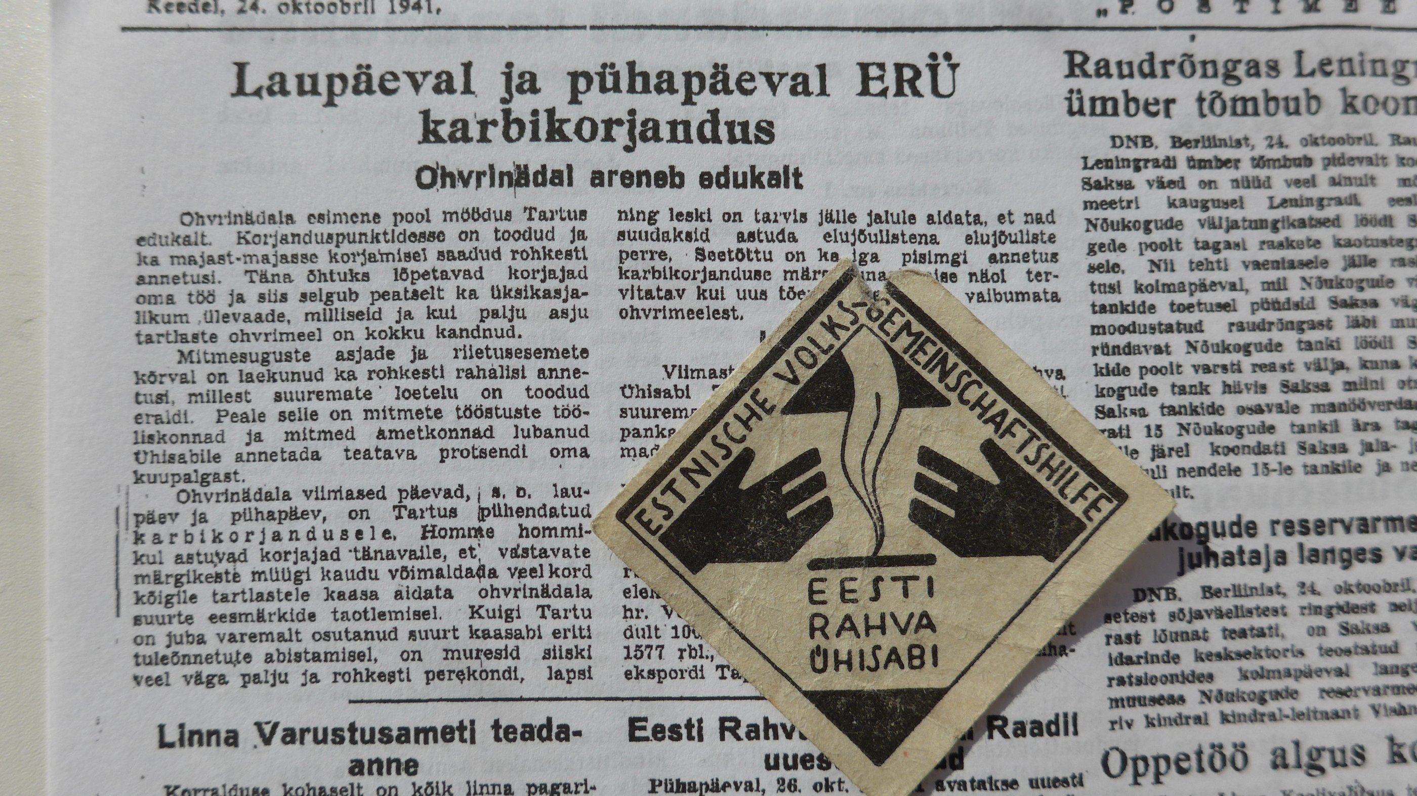 20. septemberil 1942 täitus aasta Eesti Omavalitsuse ja ERÜ tegevusest. Karbikorjanduse märk on selline.