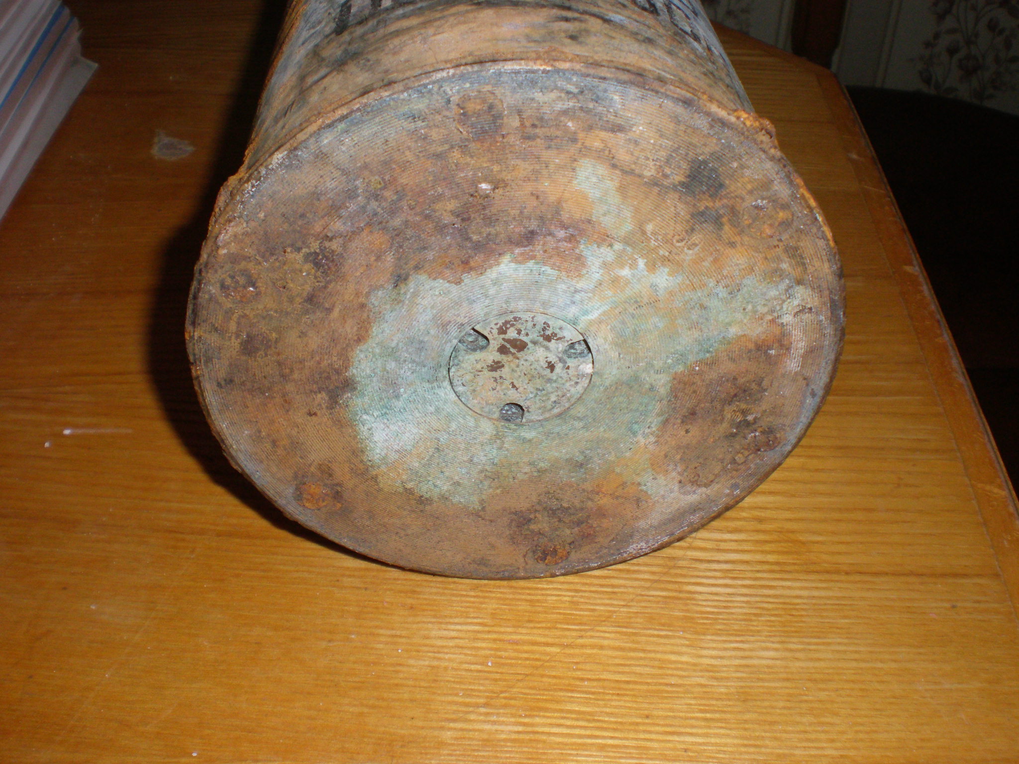 Leidsin siis vanaisa kuuri alt sellise huvitava kesta. Pikkus 15,8 cm ja läbimõõt 12,4 cm.