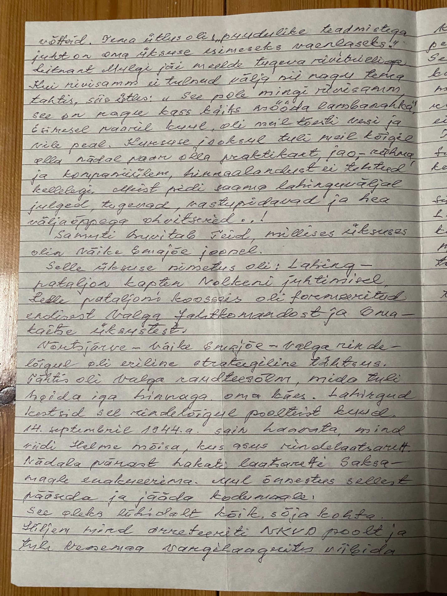 I am including the rest of Vösus' letter here on the forum, in which he writes how he retreated towards Peeterristi. I visited the Narva River with Vösu in the summer of 2011, and he told me the same thing he writes in the letter. However, there is of course a possibility that he is misremembering, ...