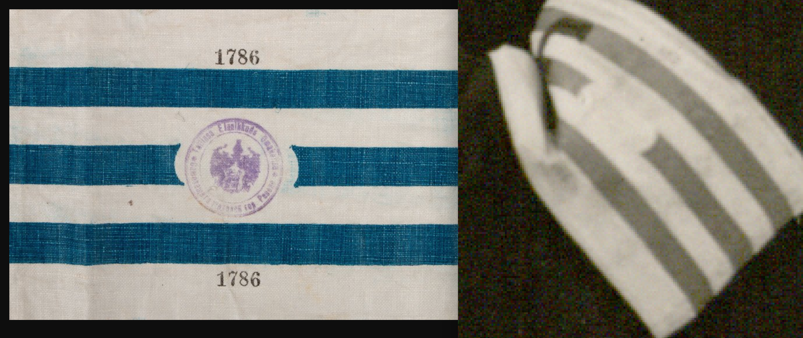 "Sideme keskosas, välimiste triipude üla- ja alaservas mustaga trükitud aastaarv 1786" :shock: