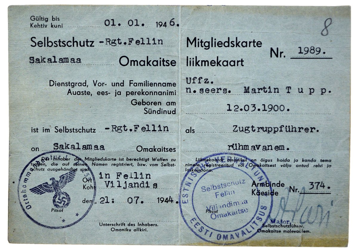 Võru korrakaitseteenistuse tunnistus 1941. aasta augustist (L. Tammiksaare kollektsioon).