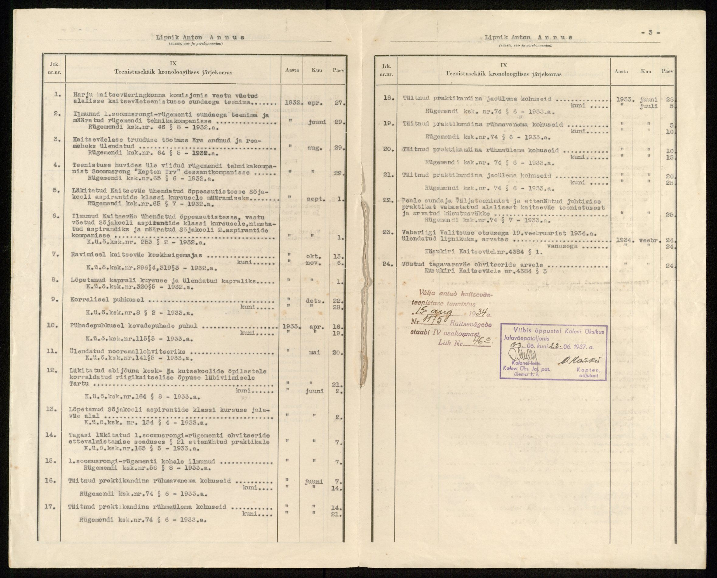 H. Värk ülendati nooremallohvitserist lipnikuks 1939. aasta 17. veebruaril.