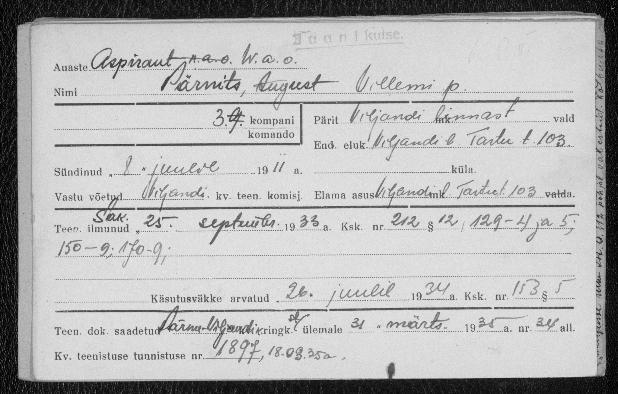 5. Eesti piirikaitserügemendi leitnandi Heino Allikmäe (enne nimemuutust Heinrich Värk) Sõjakooli aspirantide kursuse rinnamärk.