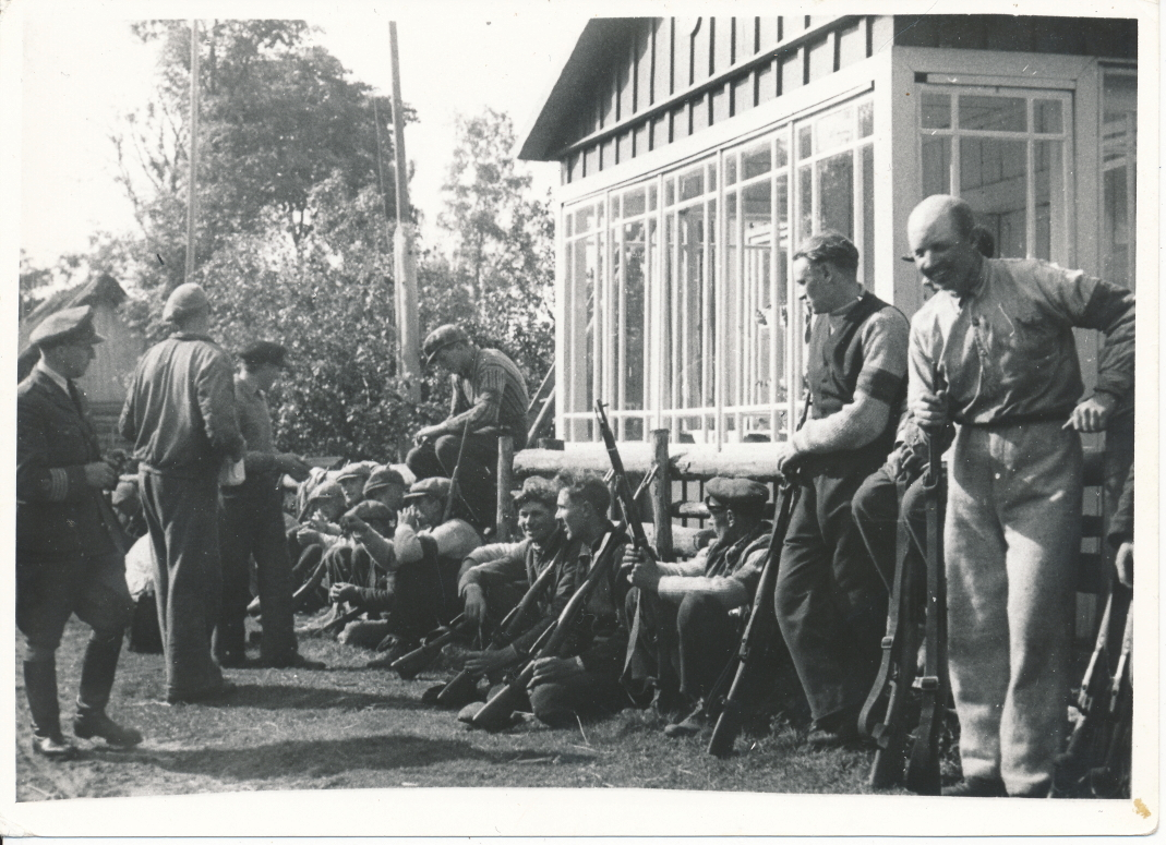 Talin. Rewidowanie jeńców radzieckich przez estońską obronę krajową, uzbrojoną w karabiny Mosin wz. 91/30. Data wydarzenia: 1941-09
