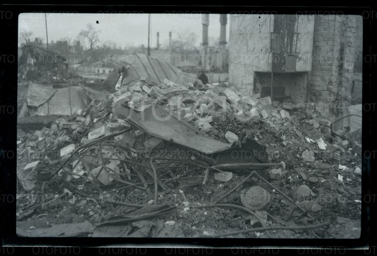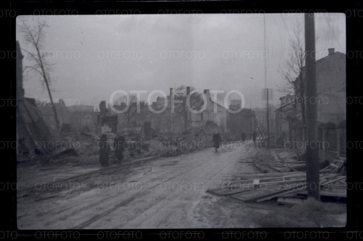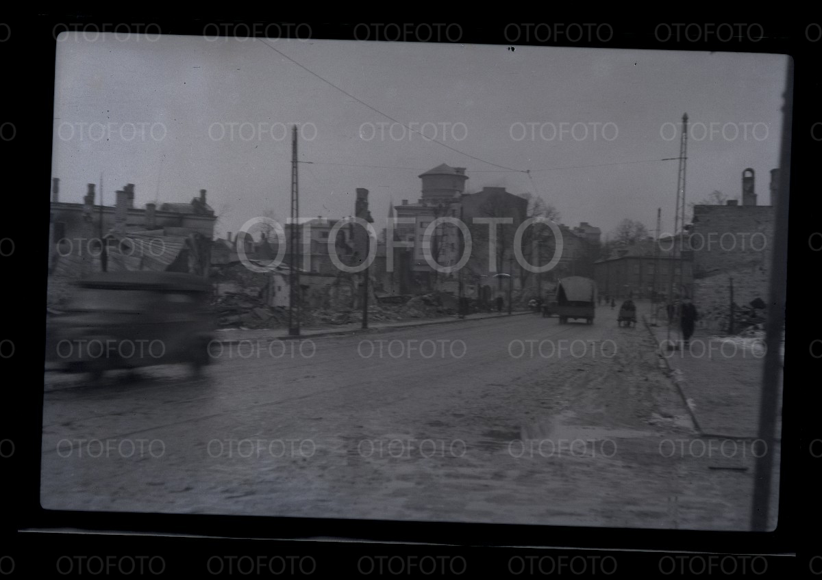 Tallinn 1944, peale pommitamist, Tõnismägi, vaatega linna poole mineva pärnu mnt ja roosikrantsi tänava suunas.