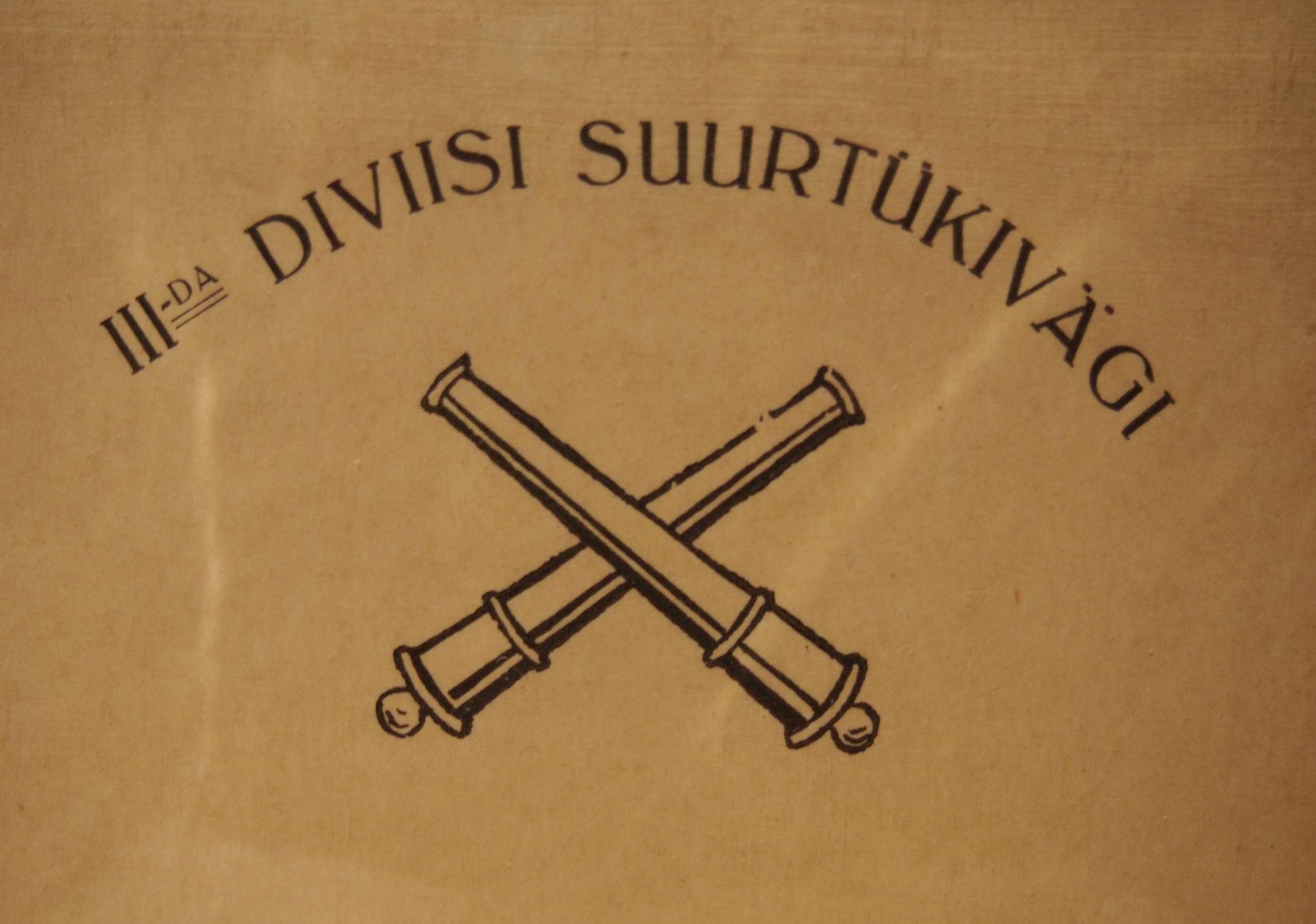Kunagi sattus kätte selline märk koos fotoga. Märk ise ca 4 - 5 mm paks ja tagant põiki nõelaga. Mõni aeg hiljem tuli foto, kus sarnane märk mehel rinnas. Seega peaks olema tegu mingi suurtükiväelaste märgiga. Kas võiks olla Vabadussõjaaegne III diviisi suurtukiväe märk?