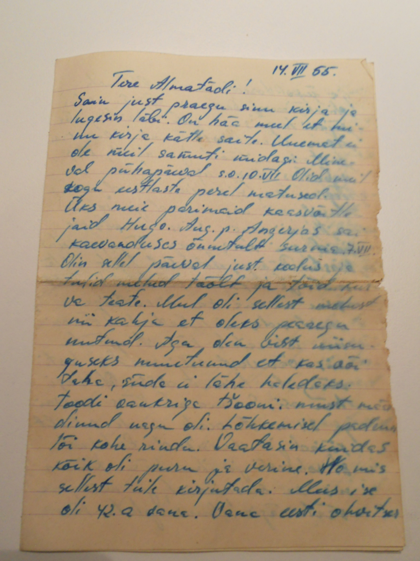 Nüüd siis asja juurde.Ühes Vorkutast saadetud kirjas kirjeldab ta Eest allohvitseri ja hilisema soomepoisi Hugo Angerja hukkumist ning matuseid.''Geni'' paneb mehe surmadaatumiga täiega puusse ja märgib selleks 1954 aasta...